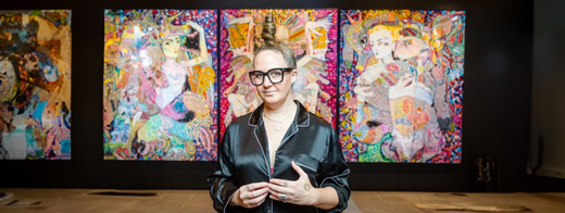 Del Kathryn Barton is one of Australia's most popular artists and painters. Having won the prestigious Archibald award twice, the painter is best known for her whimsical depictions of people and animals. Her environments are created using sequins, markers, gouache and glitter.Attending the College of Fine Arts at the University of NSW in Sydney, Del Kathryn's works are held in the collections of the Art Gallery of NSW in Sydney, the National Gallery of Australia in Canberra and the Queensland Gallery of Modern Art in Brisbane, among others. We are fortunate to speak to Del Kathryn, through an intimate interview by Eva Galambos.