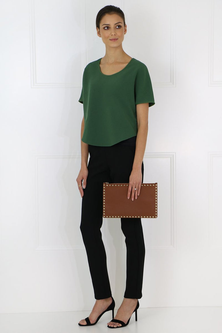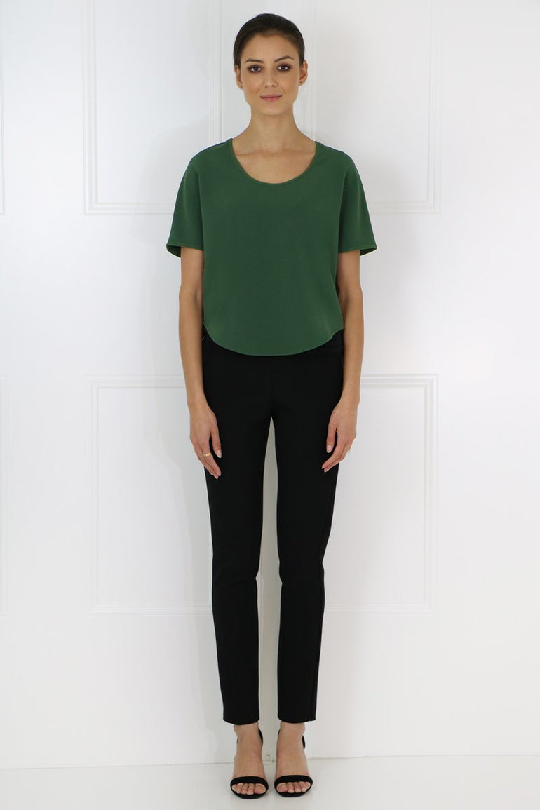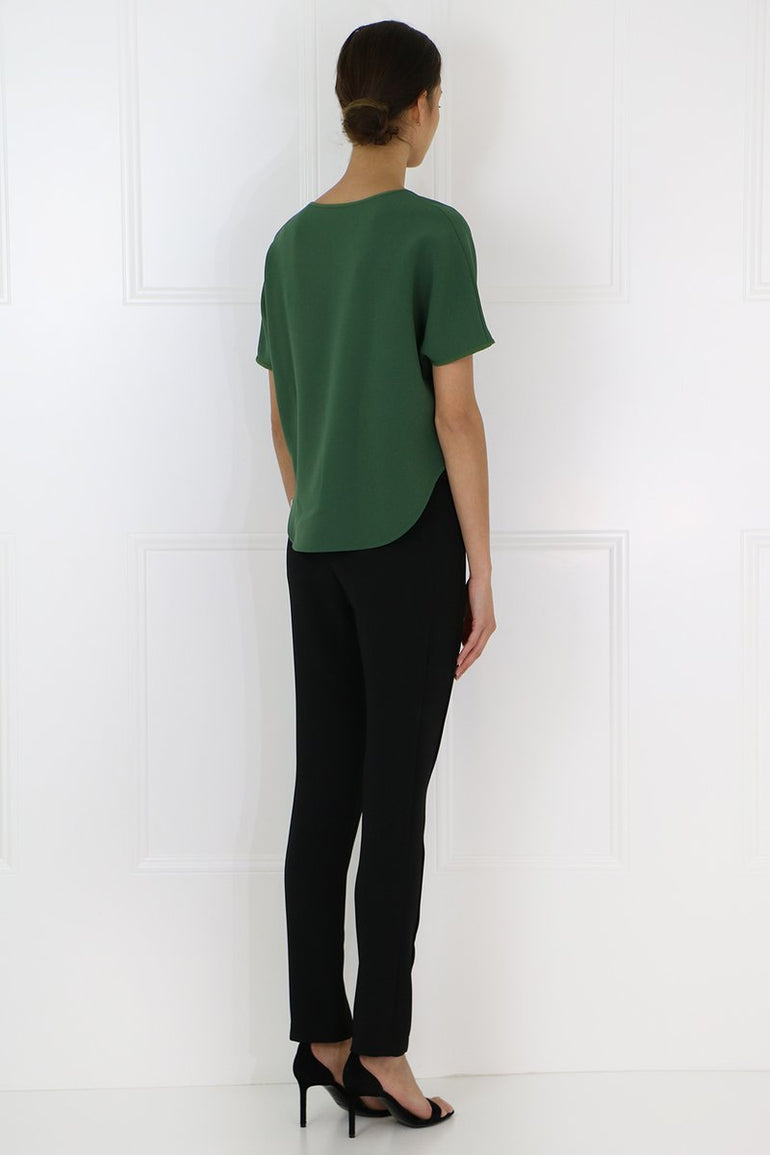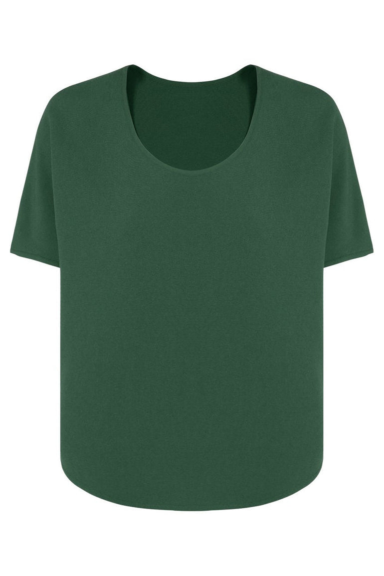 The Maison Poi E Top features cap sleeves and a round neck. It is cut in a loose, cropped silhouette with a longer hemline at the back.