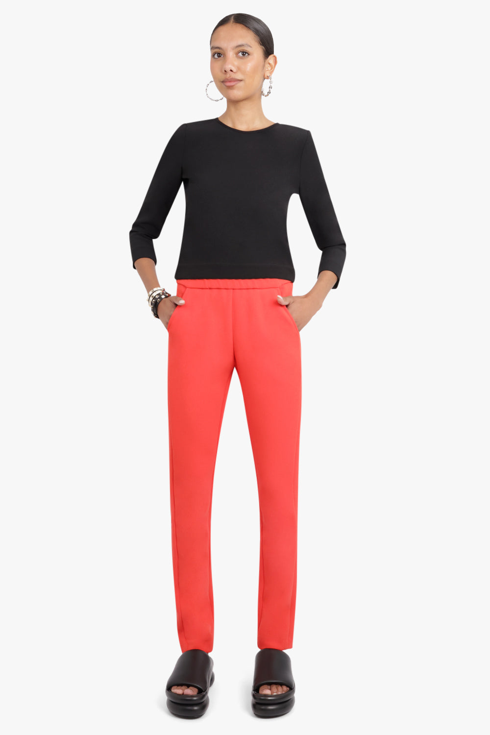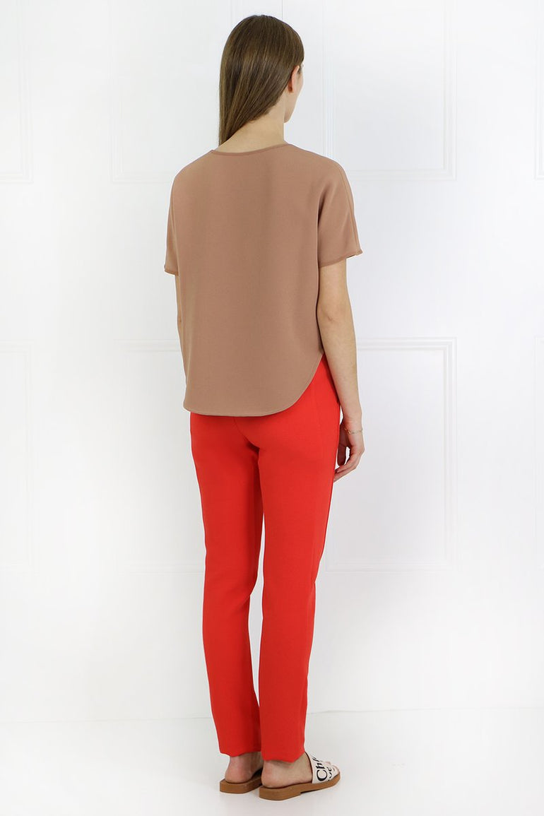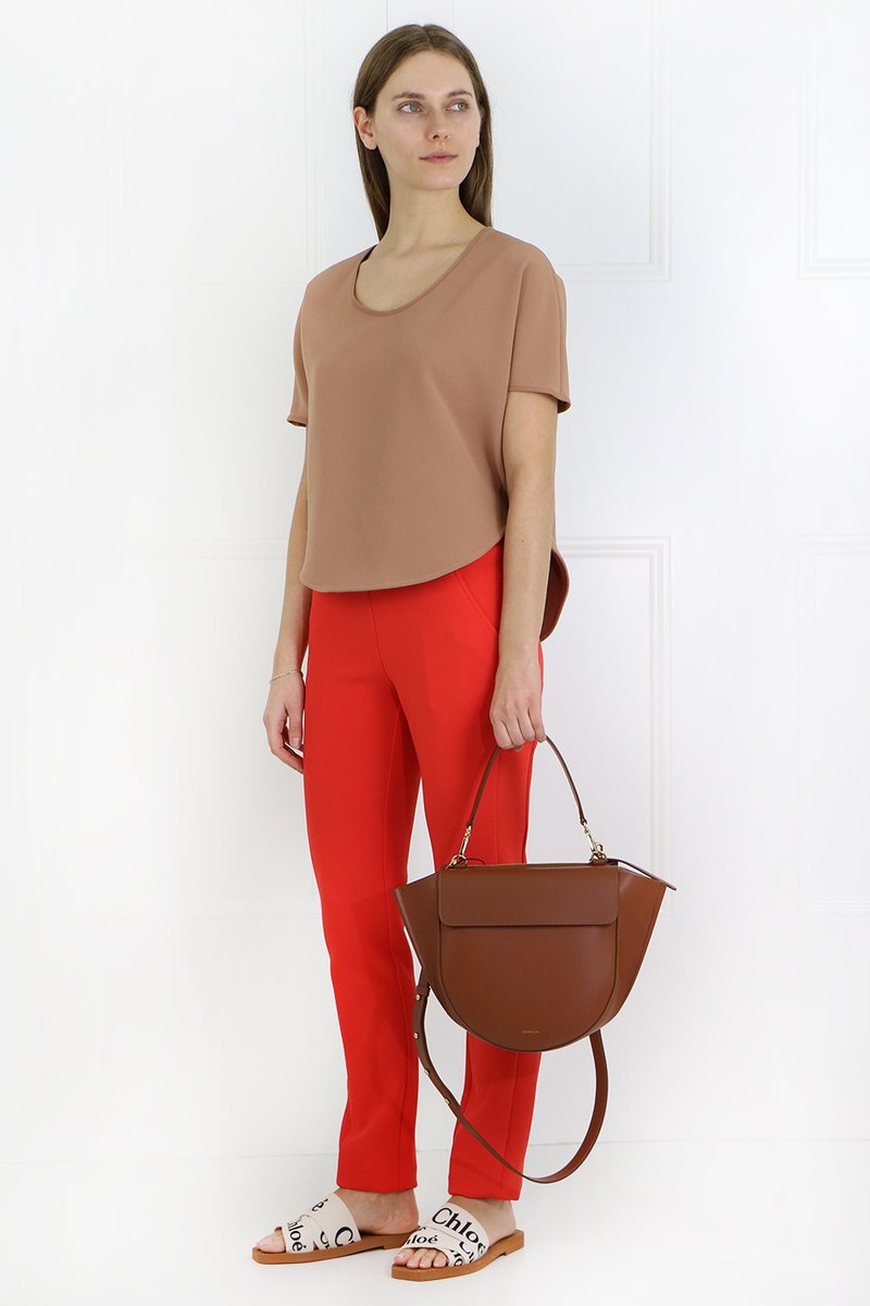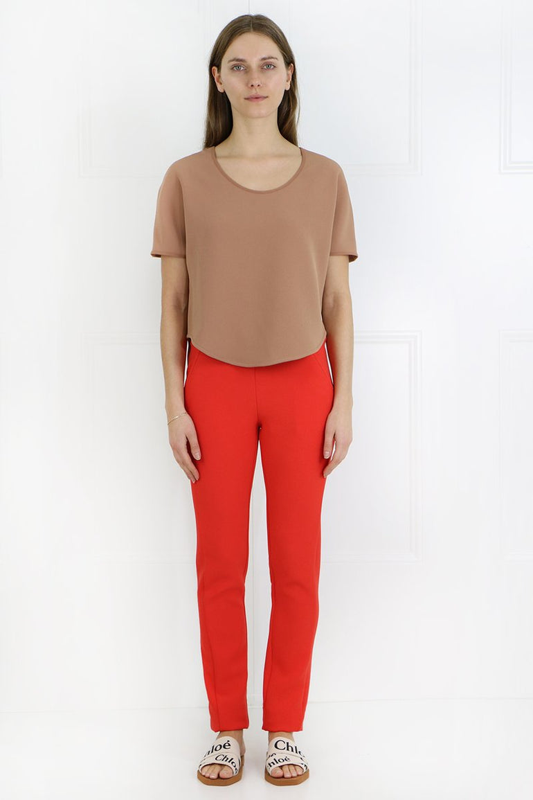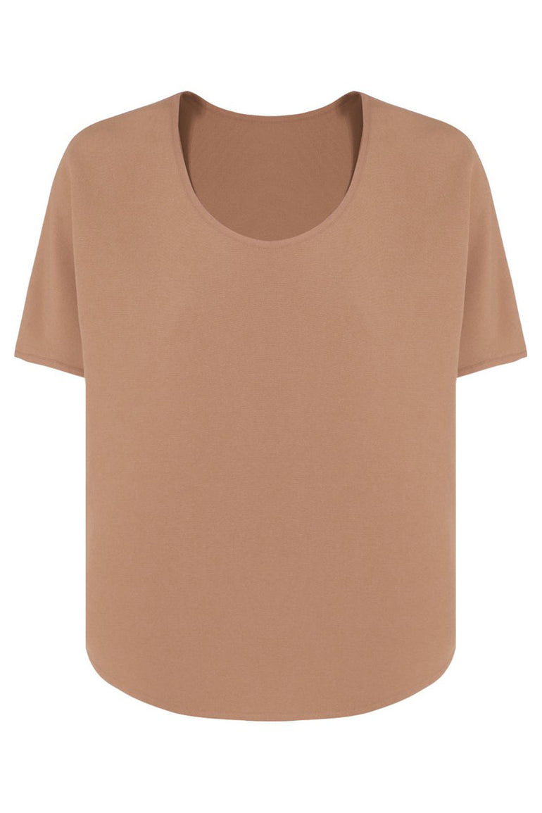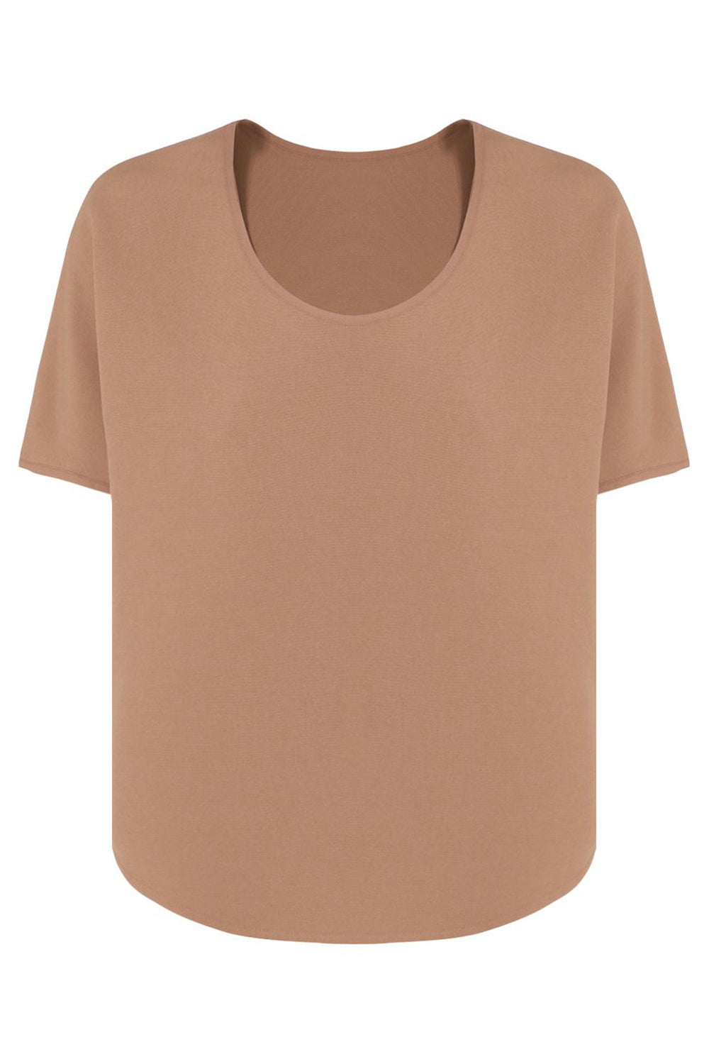 The Maison Poi E Top features cap sleeves and a round neck. It is cut in a loose, cropped silhouette with a longer hemline at the back.