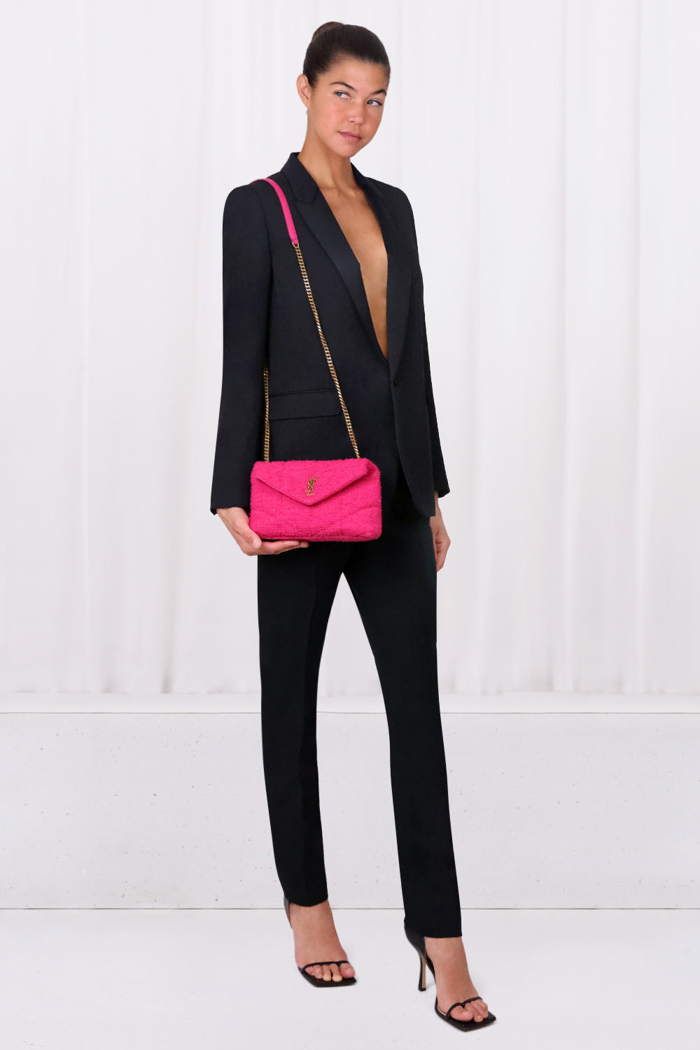 SAINT LAURENT BAGS PINK LOULOU MINI PUFFER BAG BOUCLE MAGENTA