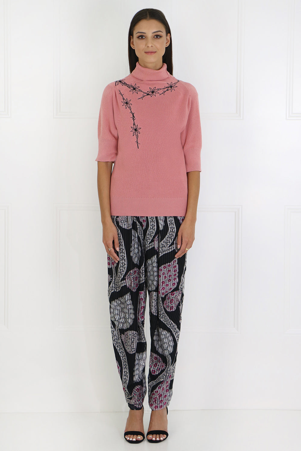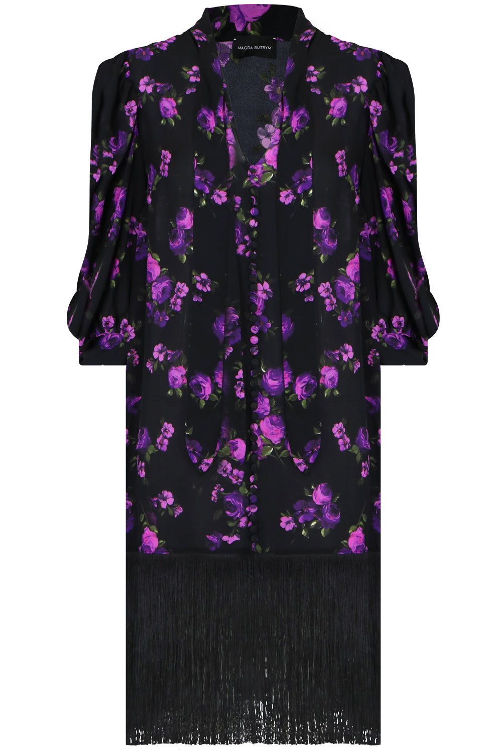 GAZA FLORAL PRINT DRESS L/S BLACK/PURPLE