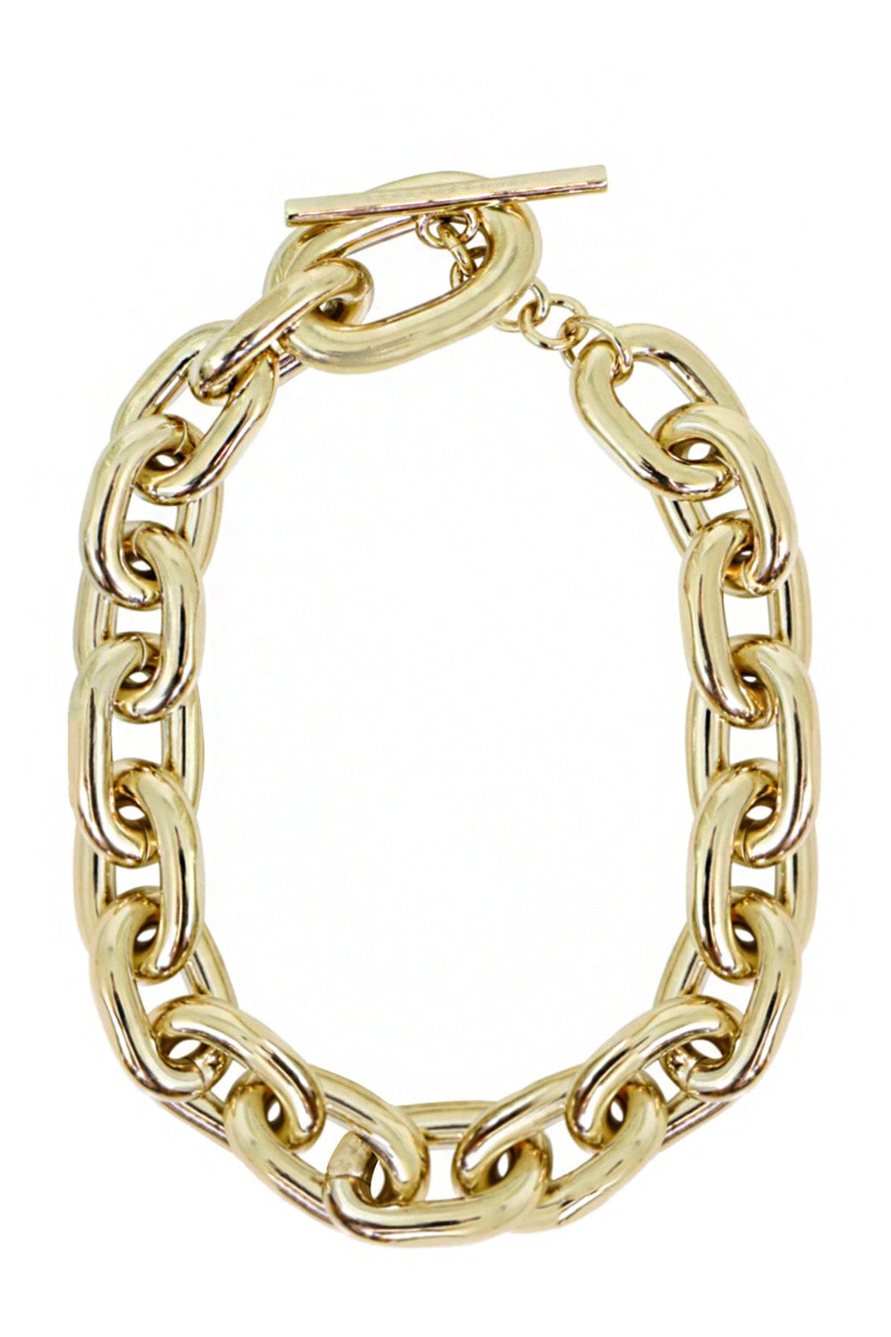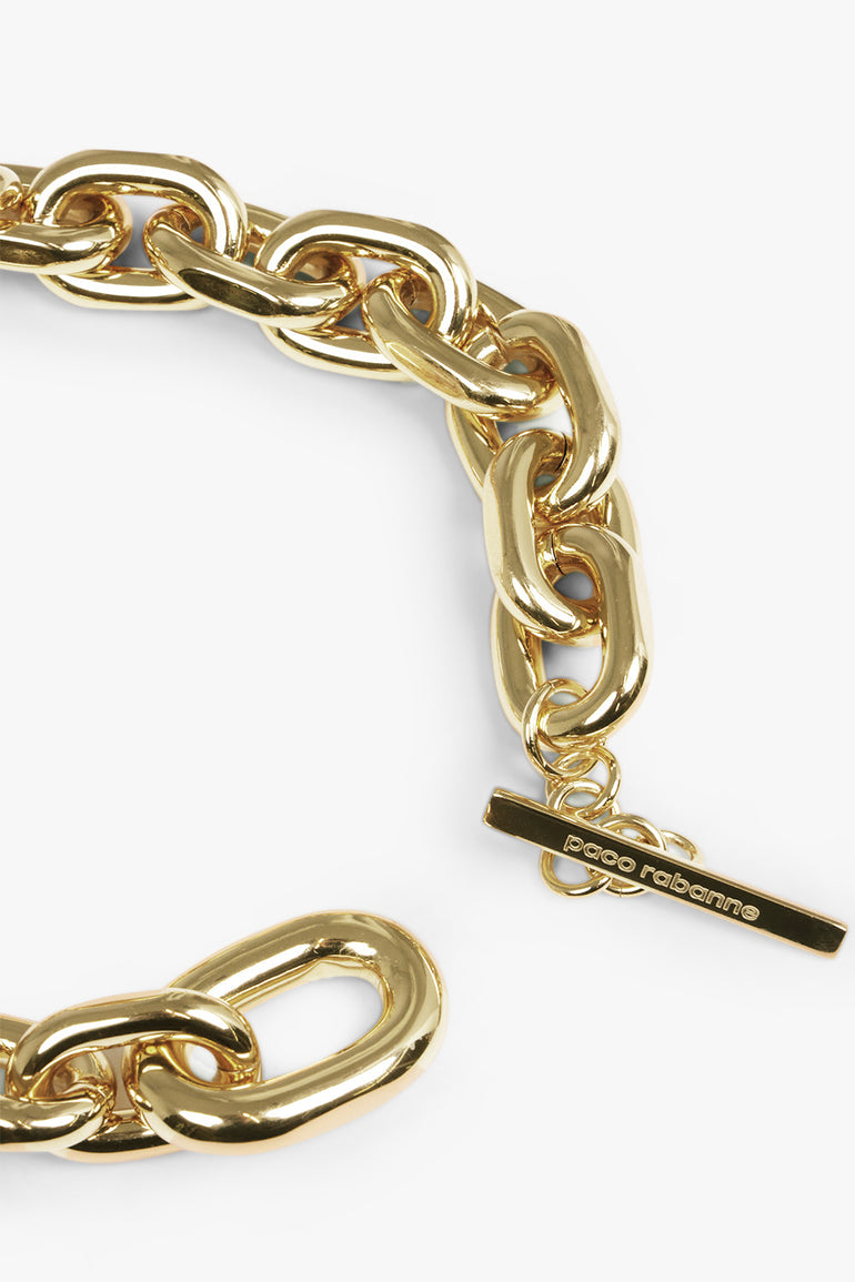 The Rabanne Choker is a chunky pale gold-tone metal necklace, which nods to the house founder’s iconic chain-link creations from the 1960s. It’s constructed from a series of interlocking oval rings and fastens via a logo-engraved T-bar.