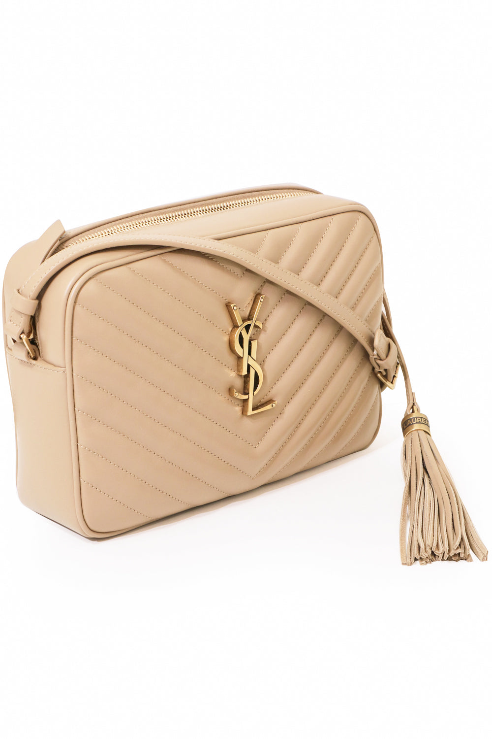 SAINT LAURENT BAGS BEIGE LOU QUILTED CAMERA BAG | DARK BEIGE/GOLD