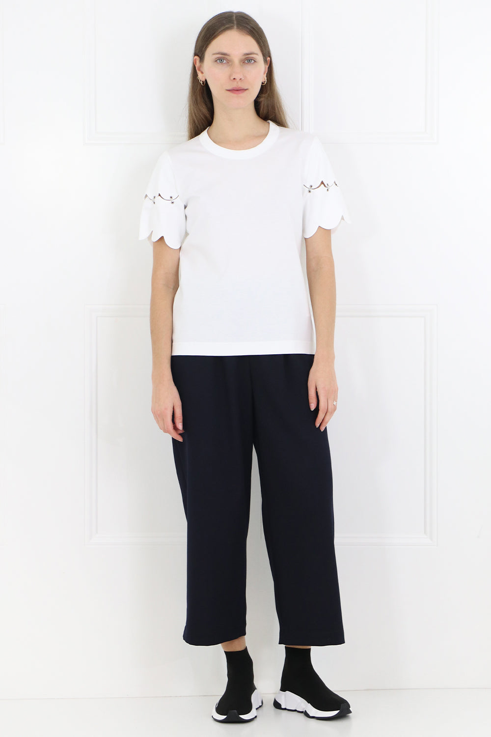 NOIR SCALLOPED SLEEVE T-SHIRT WHITE