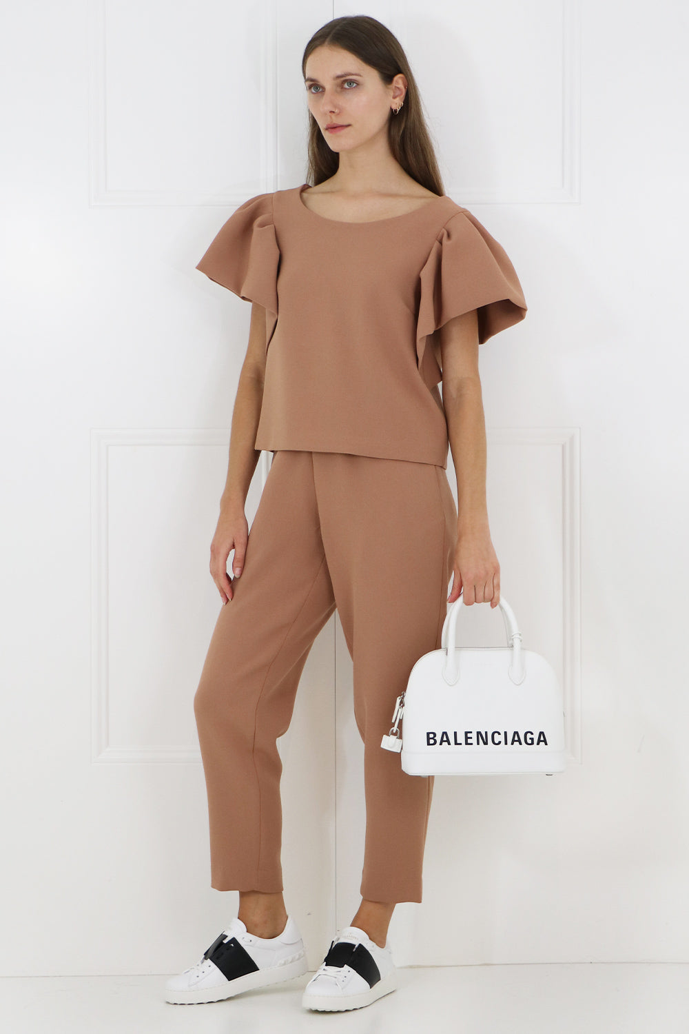 TISSUE CROP TOP WITH PUFF SLEEVE NUTMEG