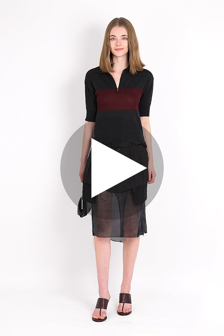 Polo Top Style S/S Midi Dress with Quilted Sheer Skirt | Charcoal/Burgundy