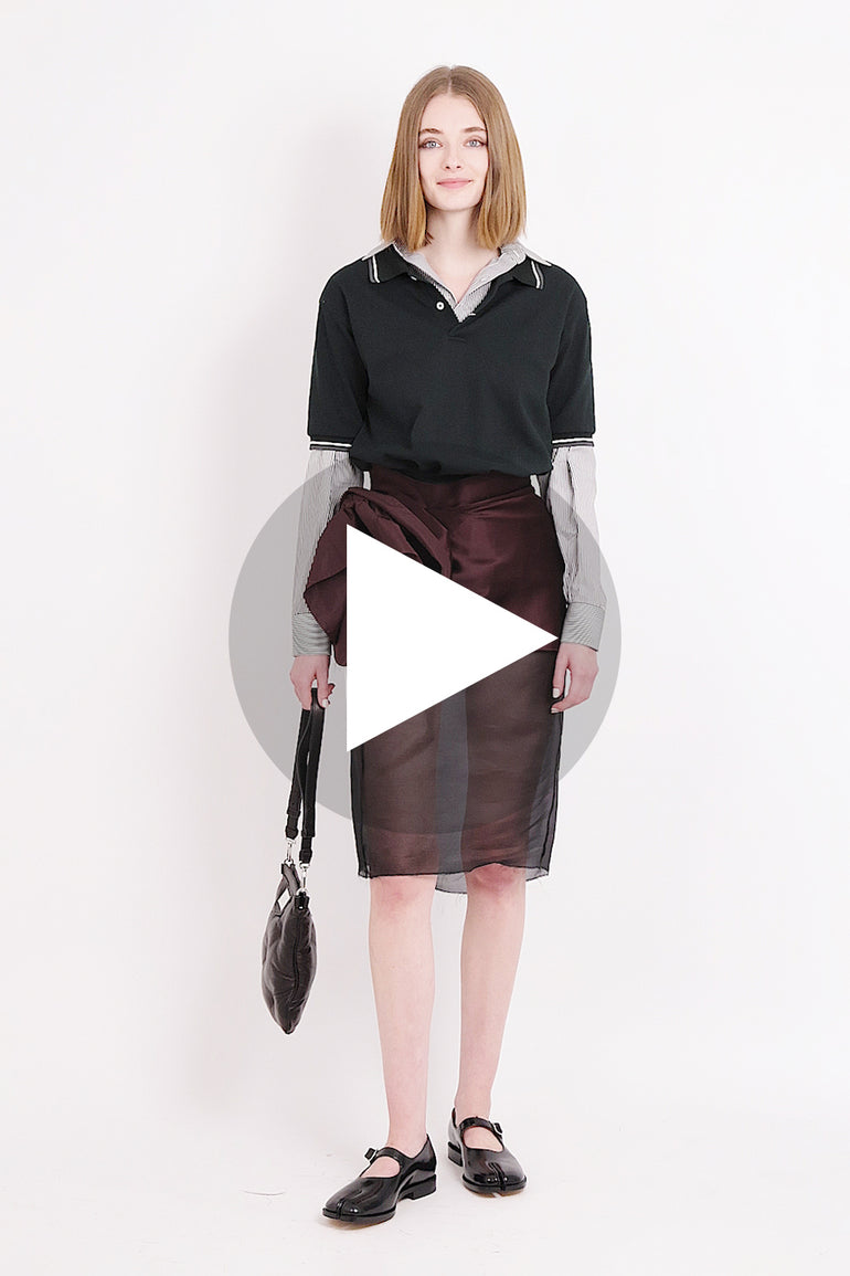 Polo X Shirt L/S Midi Dress with Ruched Detail Sheer Skirt | Green/Burgundy