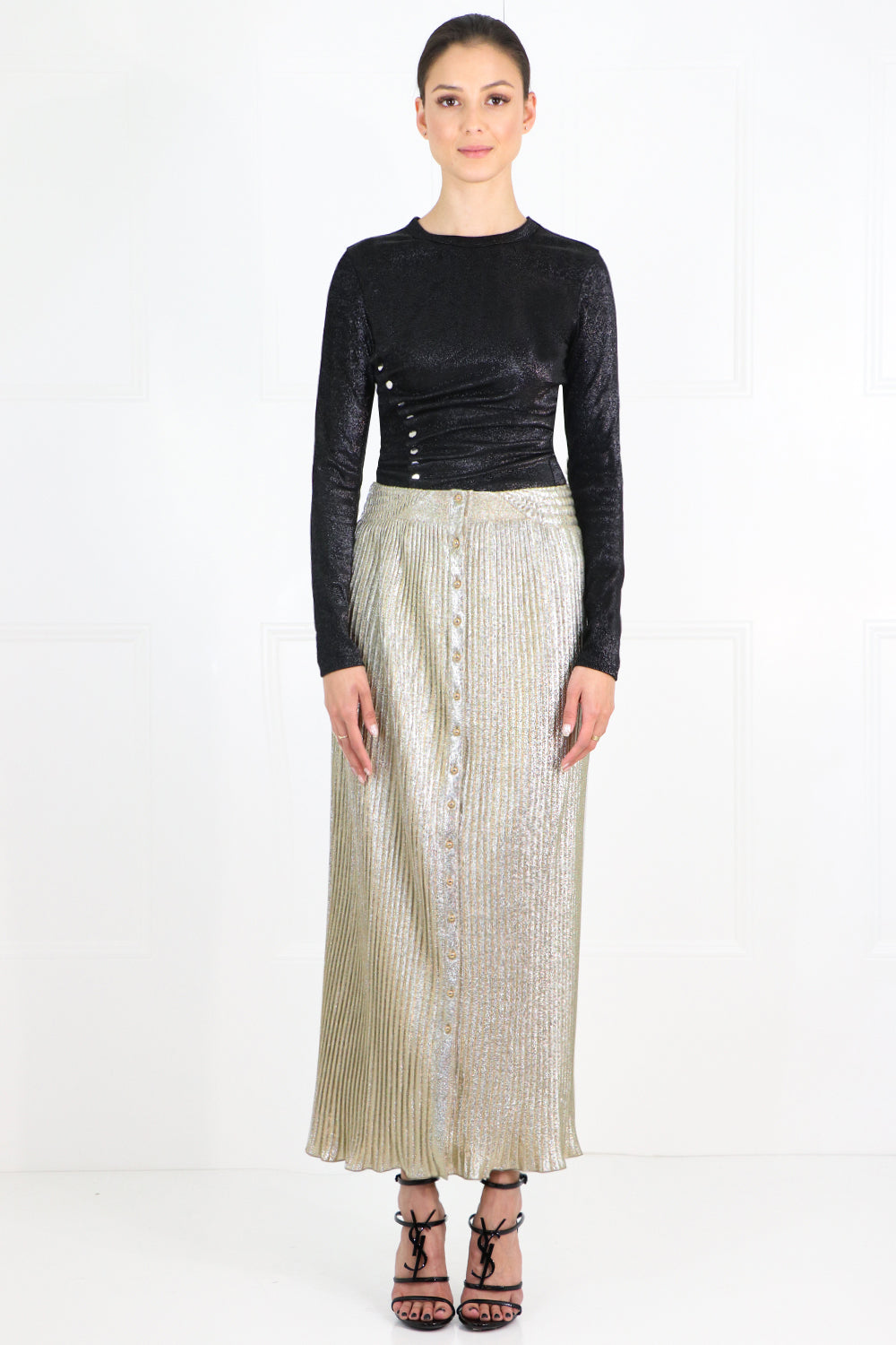 NOIR BUTTONED PEARL SHOULDER SHIRT | BLACK