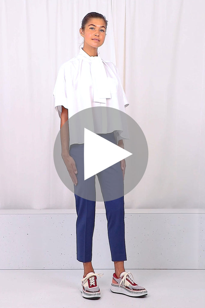 These Filipa K Emma Cropped wool trousers in blue are a slightly tapered fit with a stretch wool blend. It features vertical creases, rear welt pockets and a zip fly.