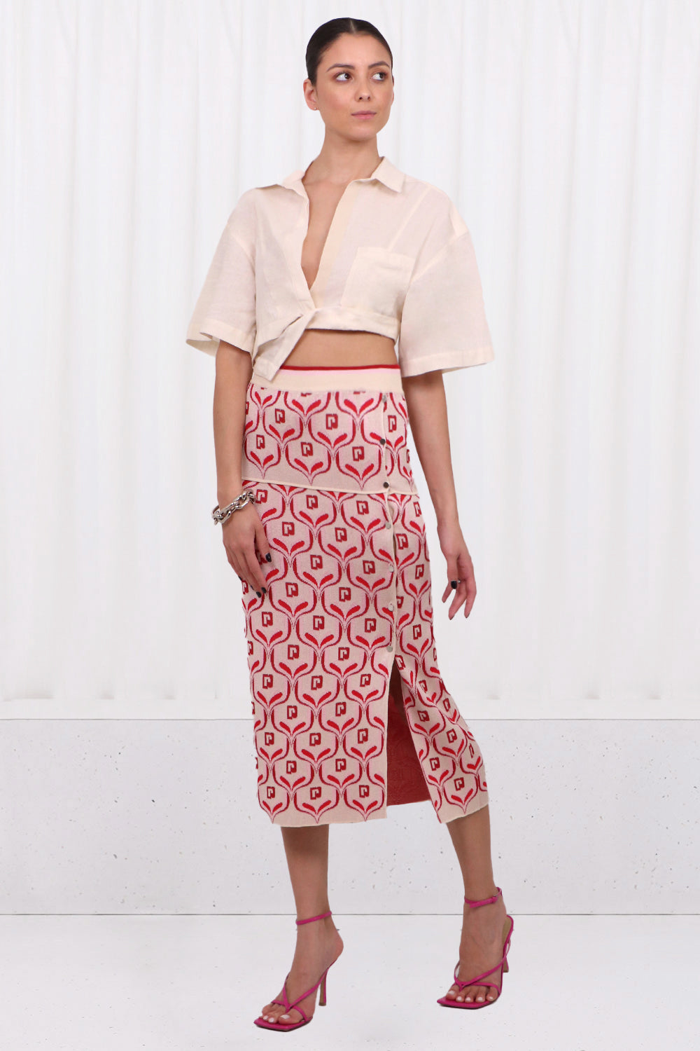 Channel an avant-garde aesthetic with Simon Jacquemus at Parlour X. This prodigal designer – he launched his first clothing collection at just 19 years of age – delves into shape and form through the use of experimental detailing such as asymmetric hems, extravagant ruffles and overblown silhouettes. The Paris fashion house is creating waves, for the effortless way it subverts basic – or even classic French pieces – with intriguing deconstruction techniques that have led it to become one of the most sought-after young brands, season after season. Browse the selection of new season Jacquemus Chiquito, Moyen Riviera bags, totes, shoppers, shoes, sneakers, heels, sandals, skirts, tops, dresses