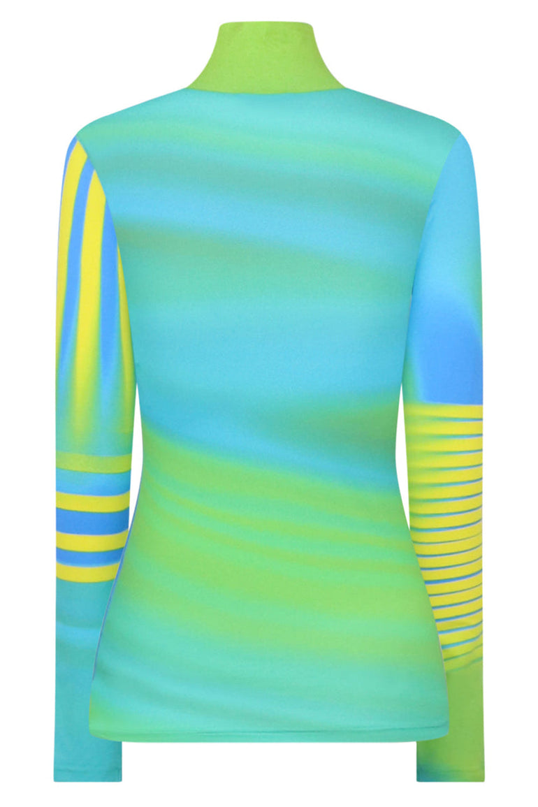 NINA RICCI RTW SECOND SKIN L/S SHIRT | GREEN/BLUE/YELLOW