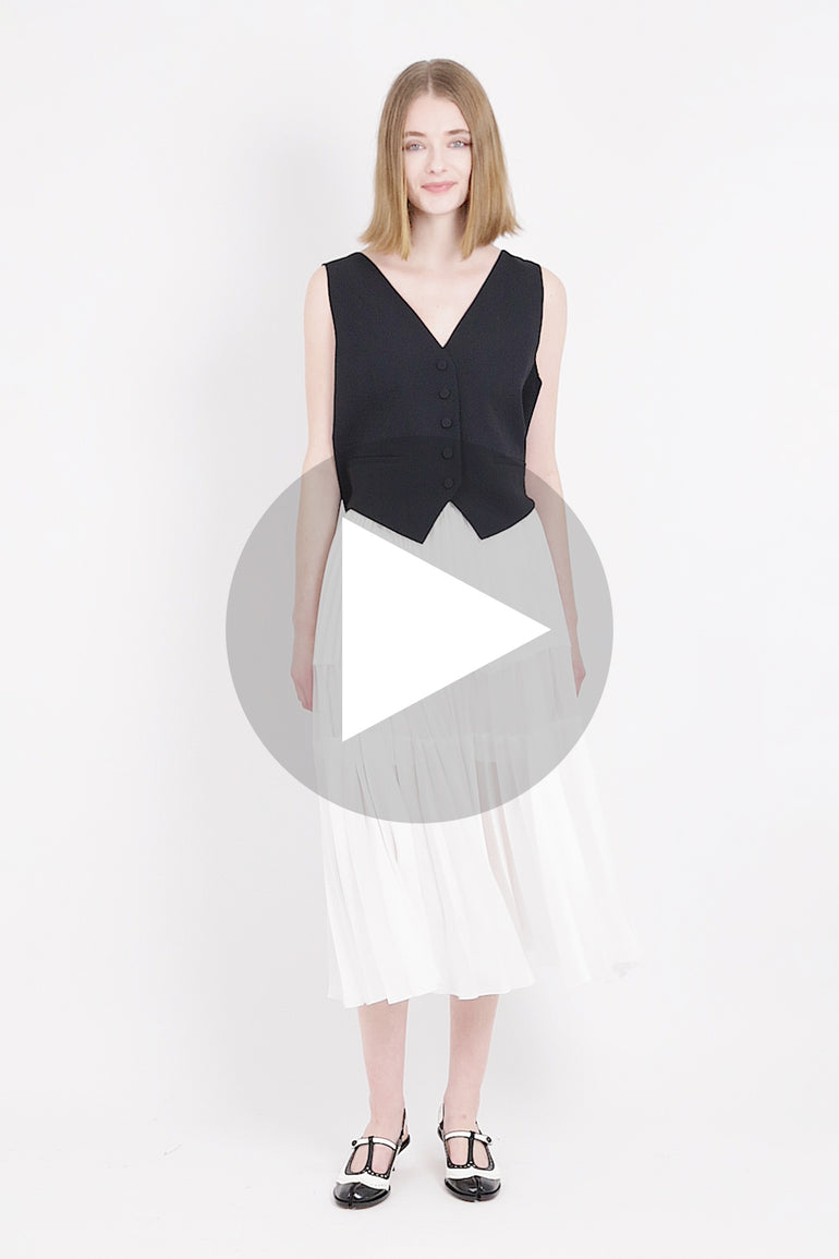 This vest features a draped open-back design with a cotton blend, perfect for a V-neck front button fastening. The sleeveless cut and asymmetric hem add a unique touch to this stylish piece.