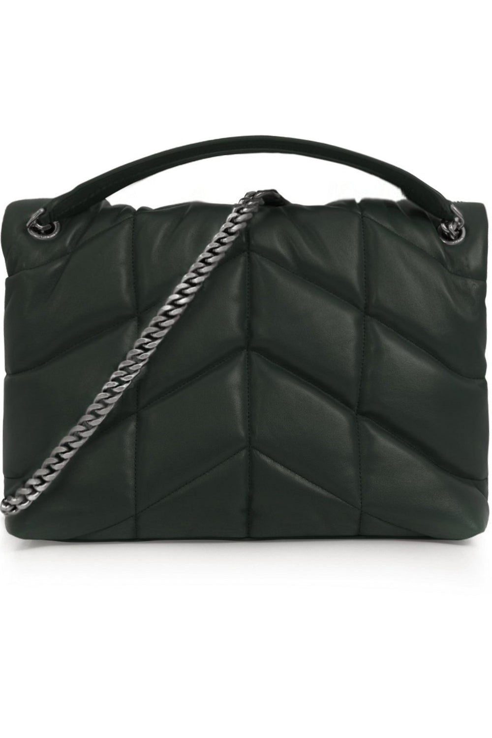 LOULOU MEDIUM PUFFER BAG GREEN FIELD/SILVER
