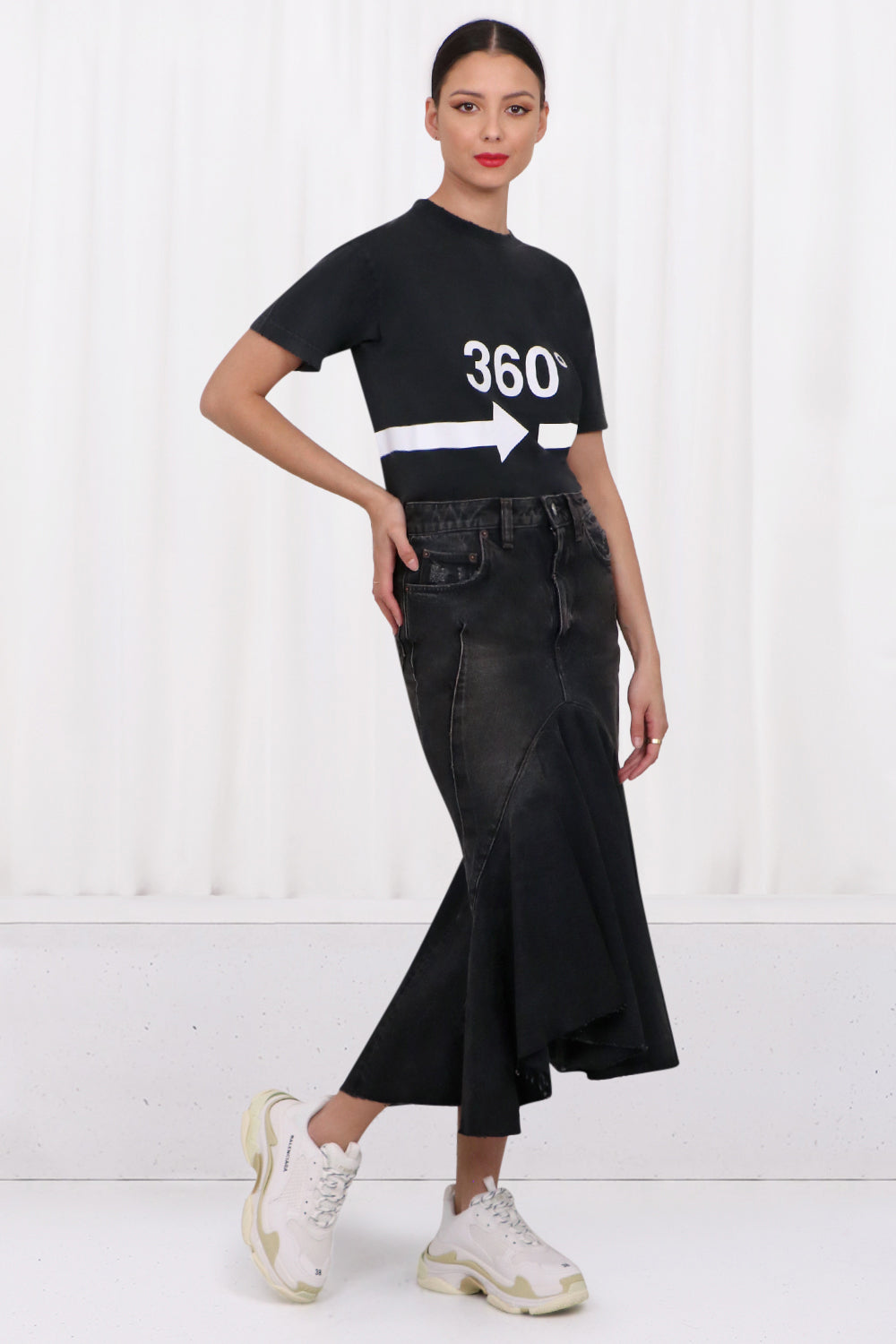 WASHED DENIM FRONT SLIT MIDI SKIRT | WASHED GREY