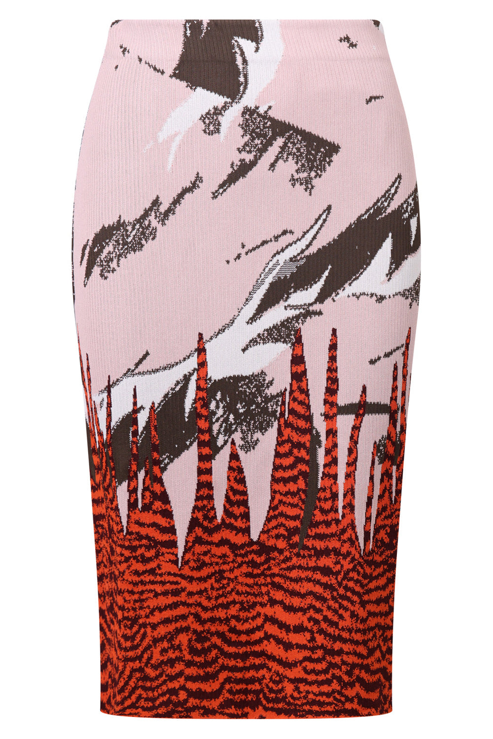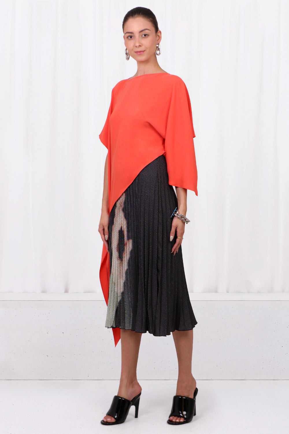 Delphi Abstract Print Pleat Drape Midi Skirt | Black/Red/White