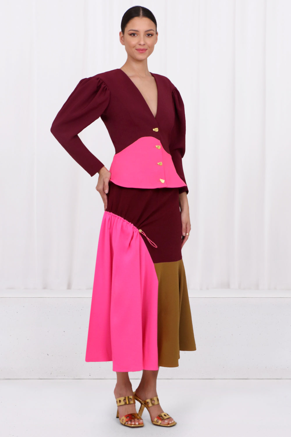 Delphi Pleat Drape Midi Skirt | Mulberry Purple