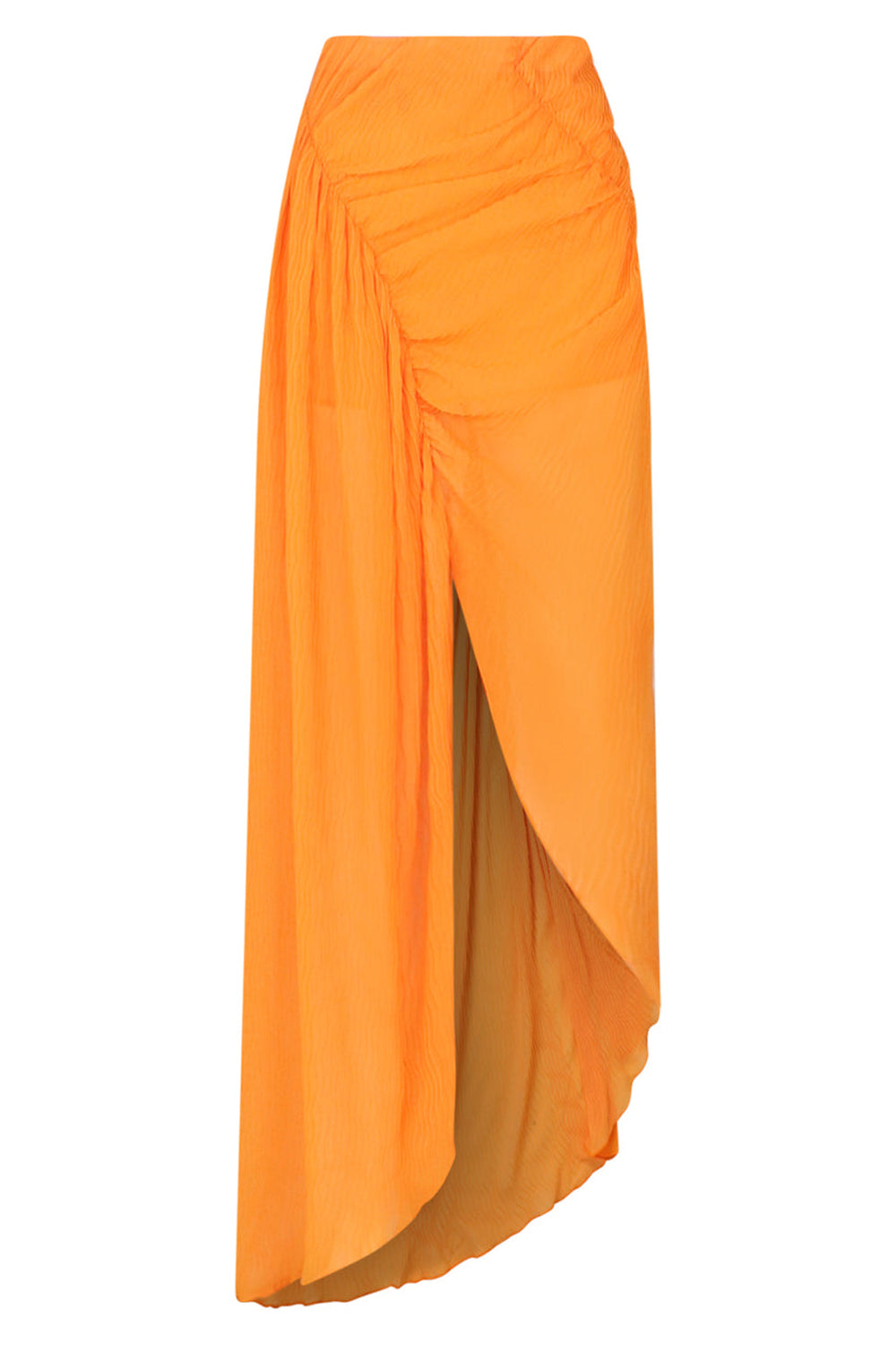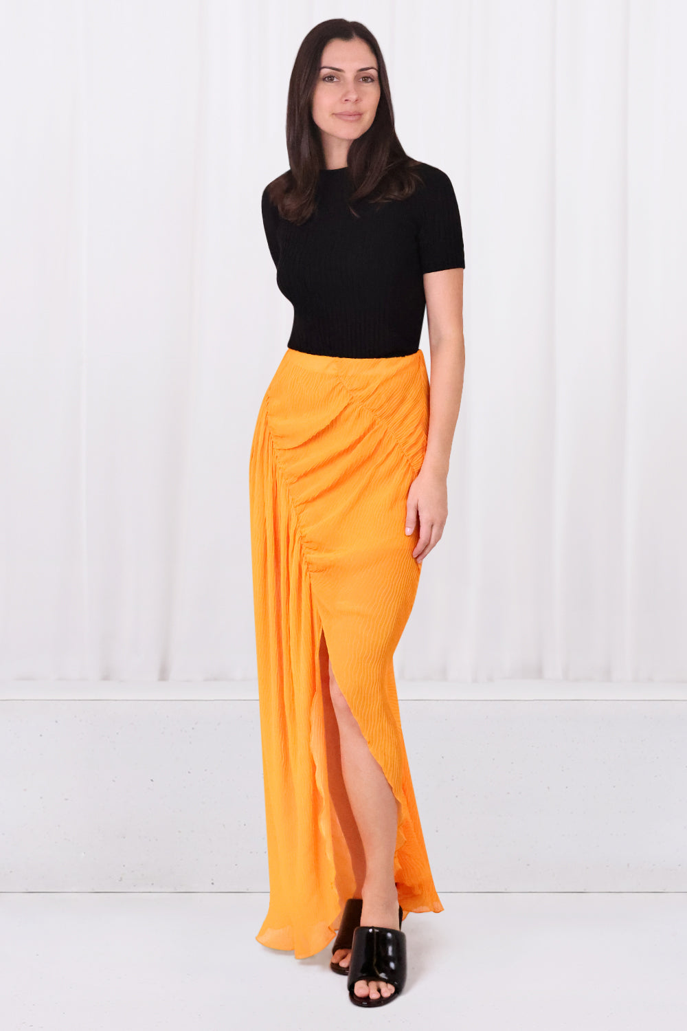 Saren Asymmetric Ruched Maxi Skirt | Orange