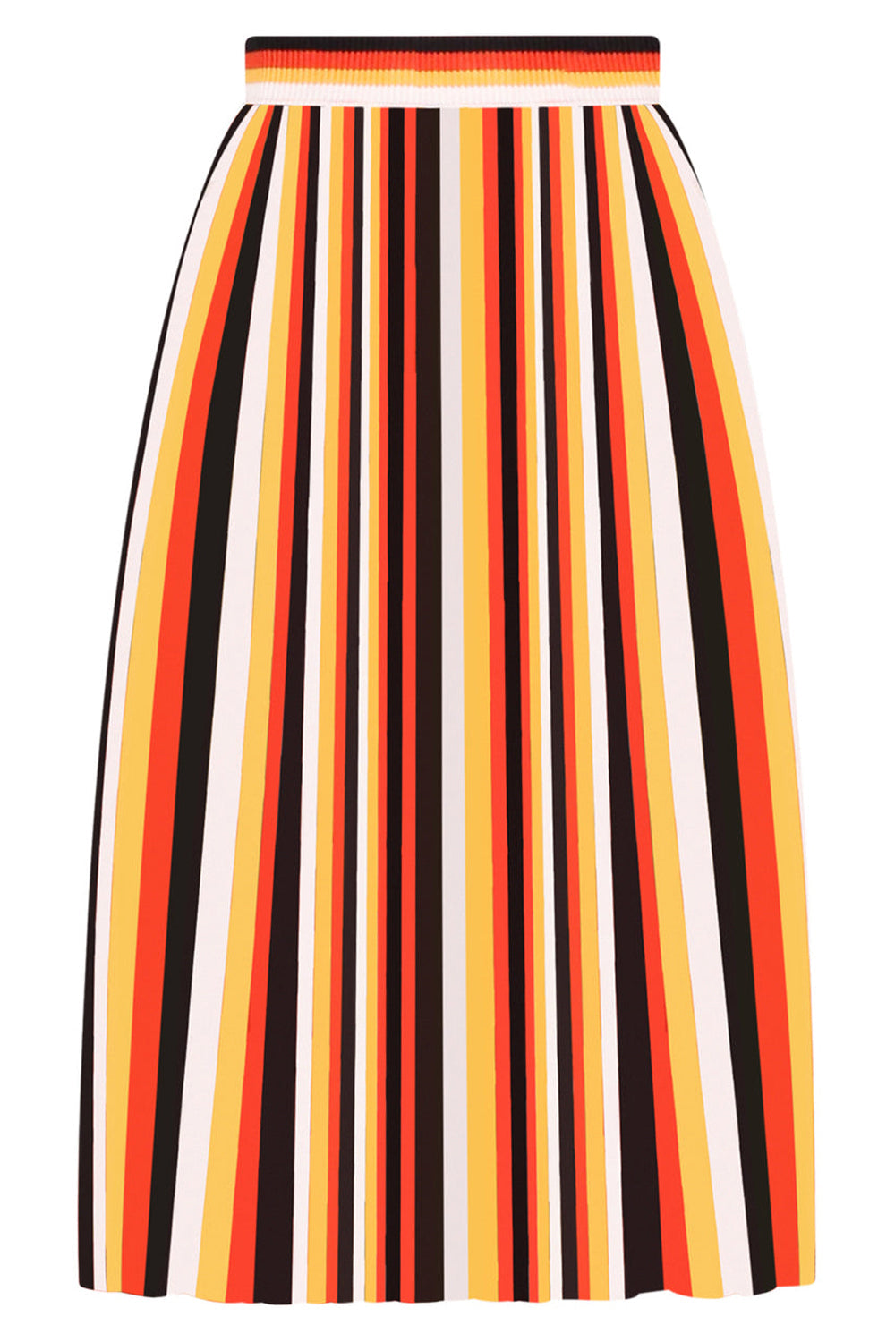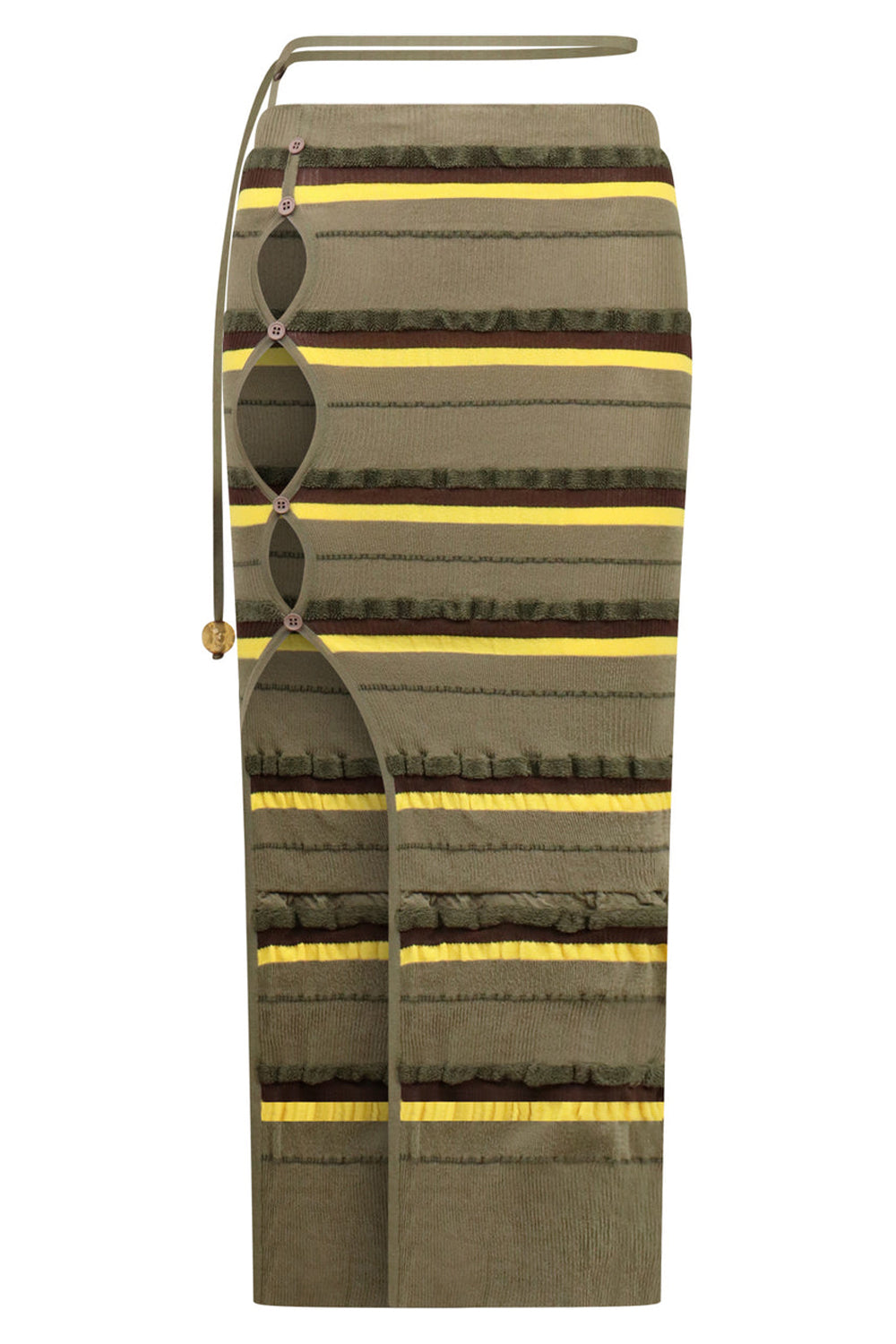 Cross Stitch Tie Side Detail Stripe Midi Skirt | Mustard