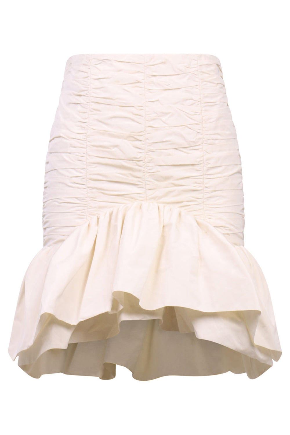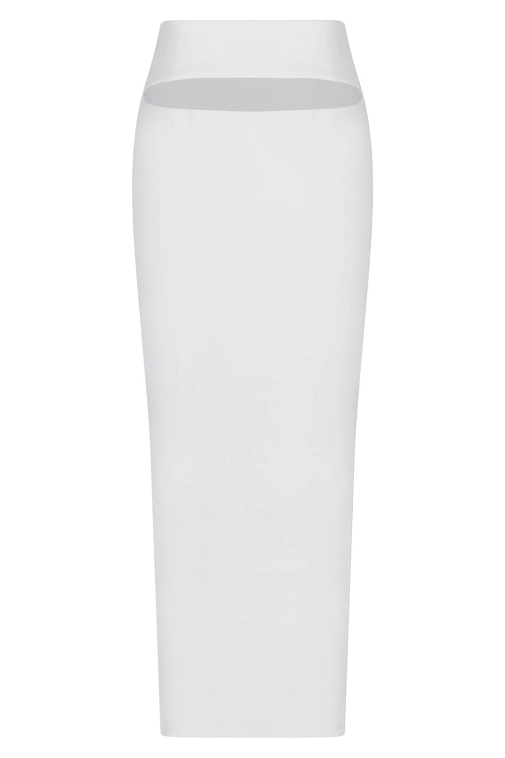Drape Ruched Panel Drawstring Midi Skirt | White