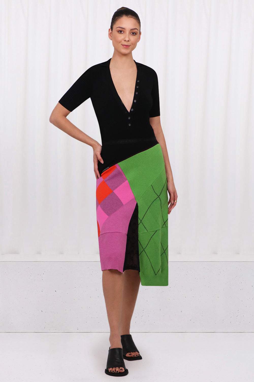Split Detail Asymmetric Hem Midi Skirt | Grey/Black