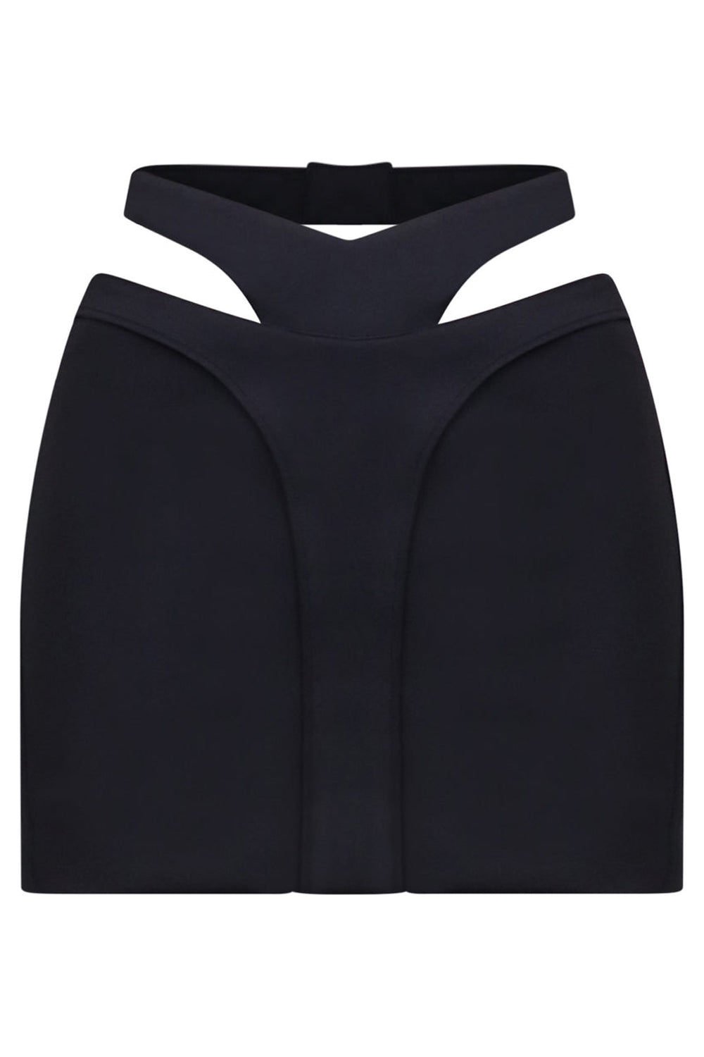Crepe Mini Skirt with Diamond-Shaped Assembly | Black