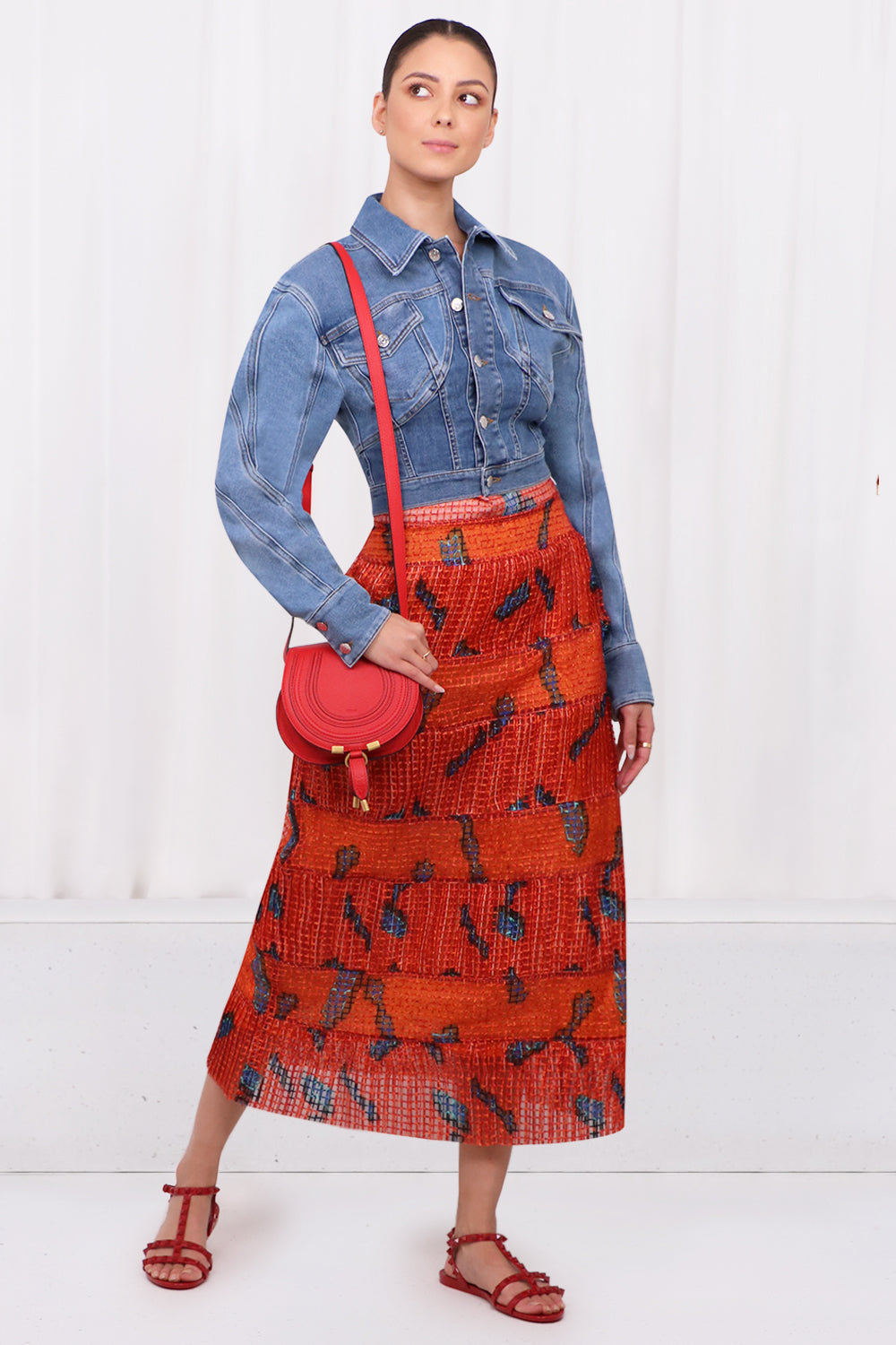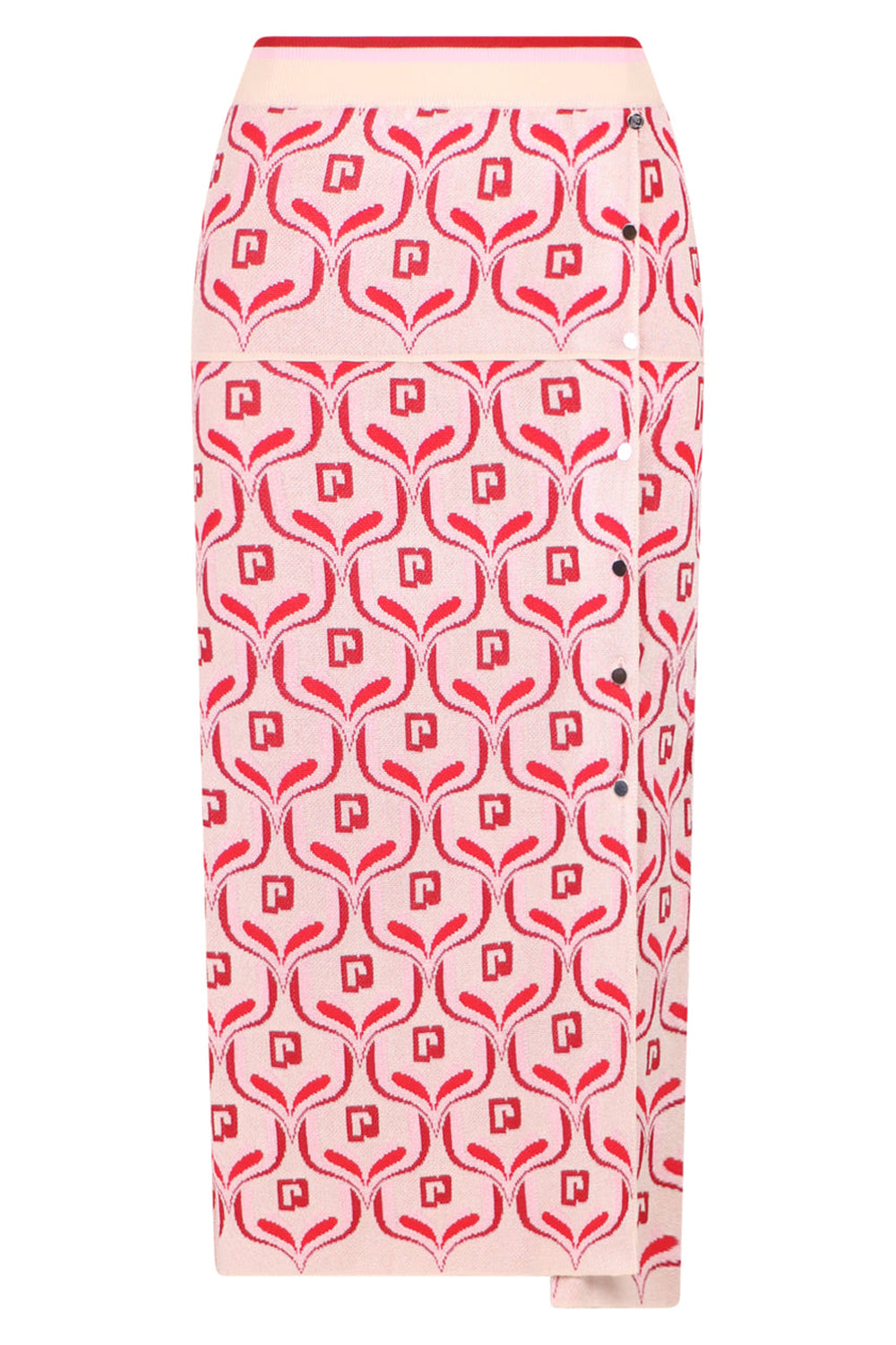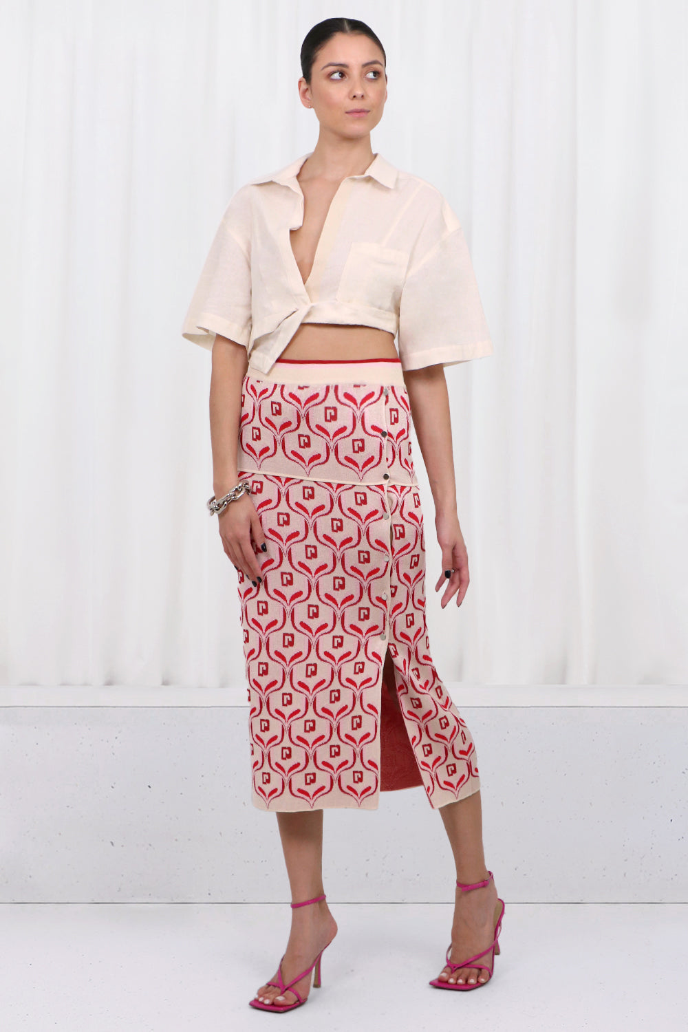 Sanne Floral Print Midi Slit Skirt | Cherry Red