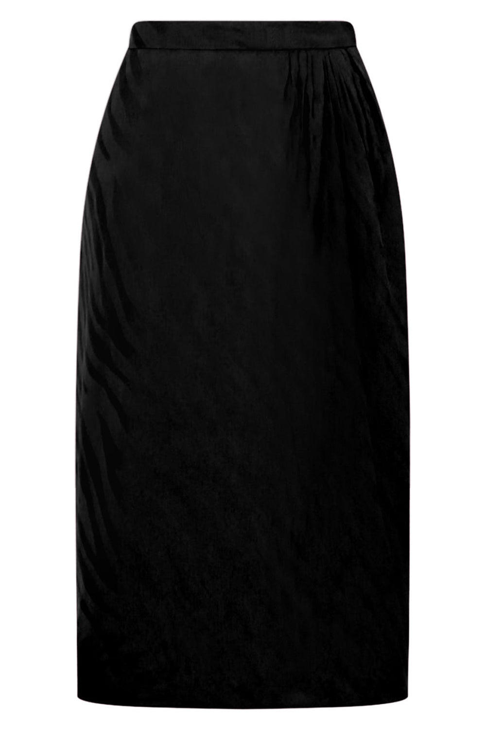 Drape Ruched Panel Drawstring Midi Skirt | Black