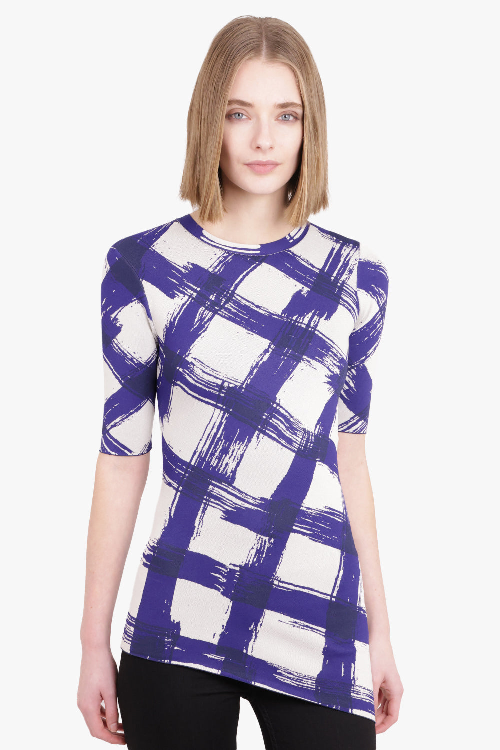 Structured Shoulder S/S Asymmetric Knit Pullover | Off White