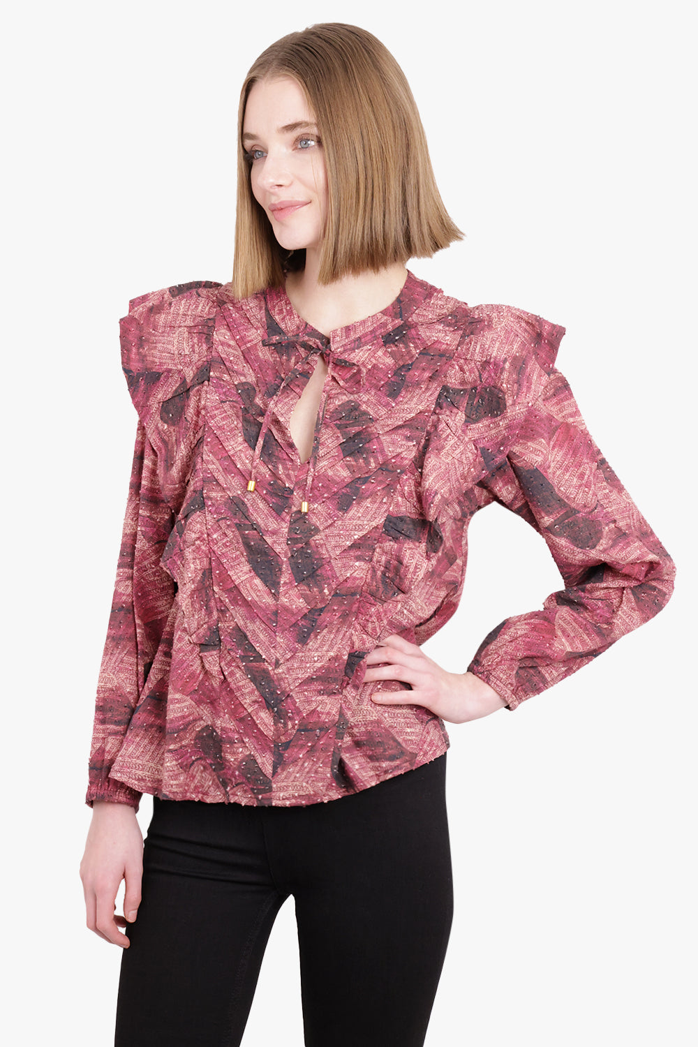 Camiel Stripe L/S Wrap Blouse | Burgundy