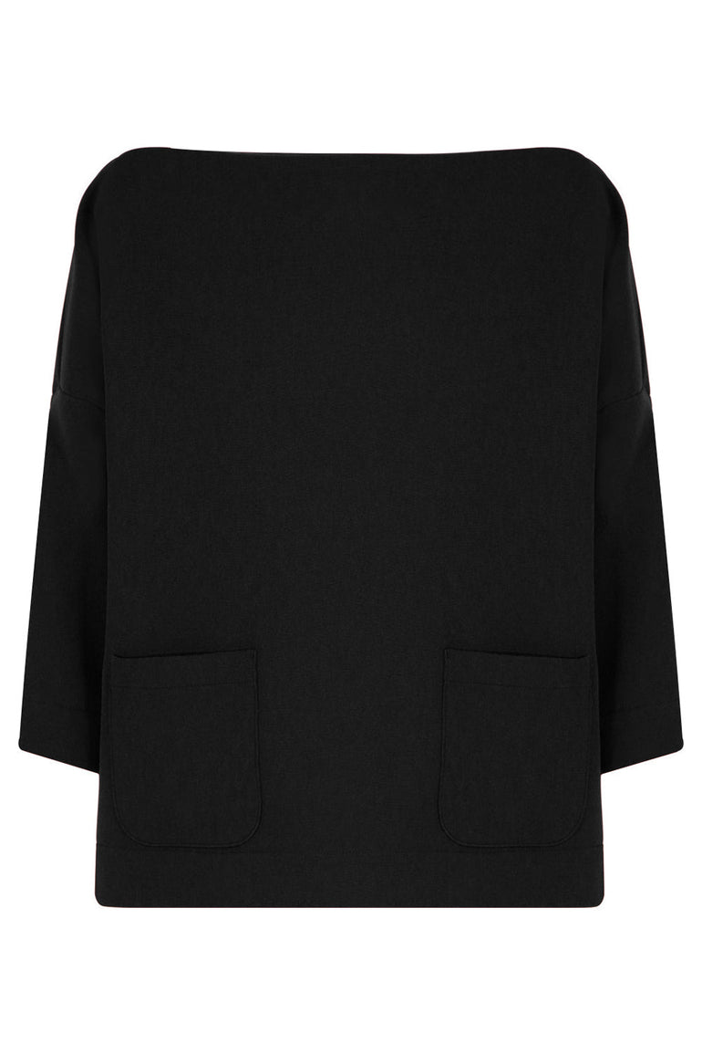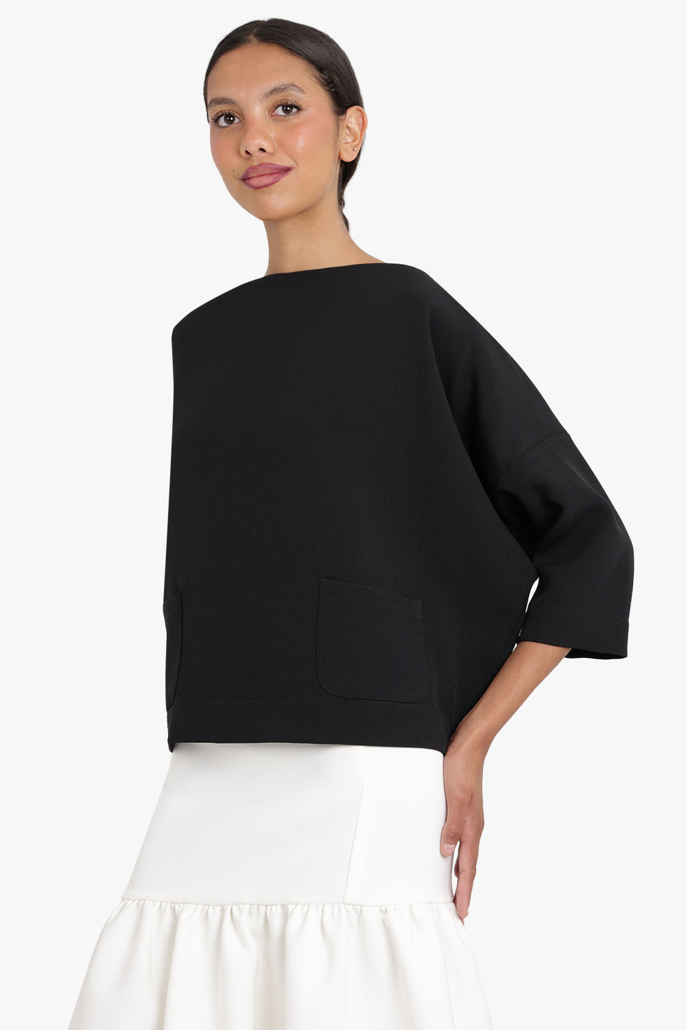 MAISON POI RTW TISSUE SWING TOP WITH POCKETS 3/4SL BLACK