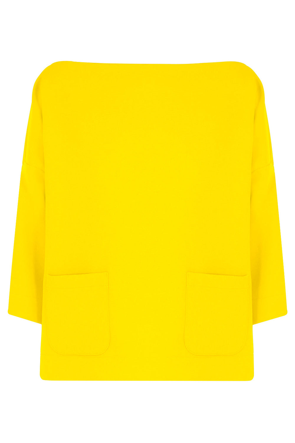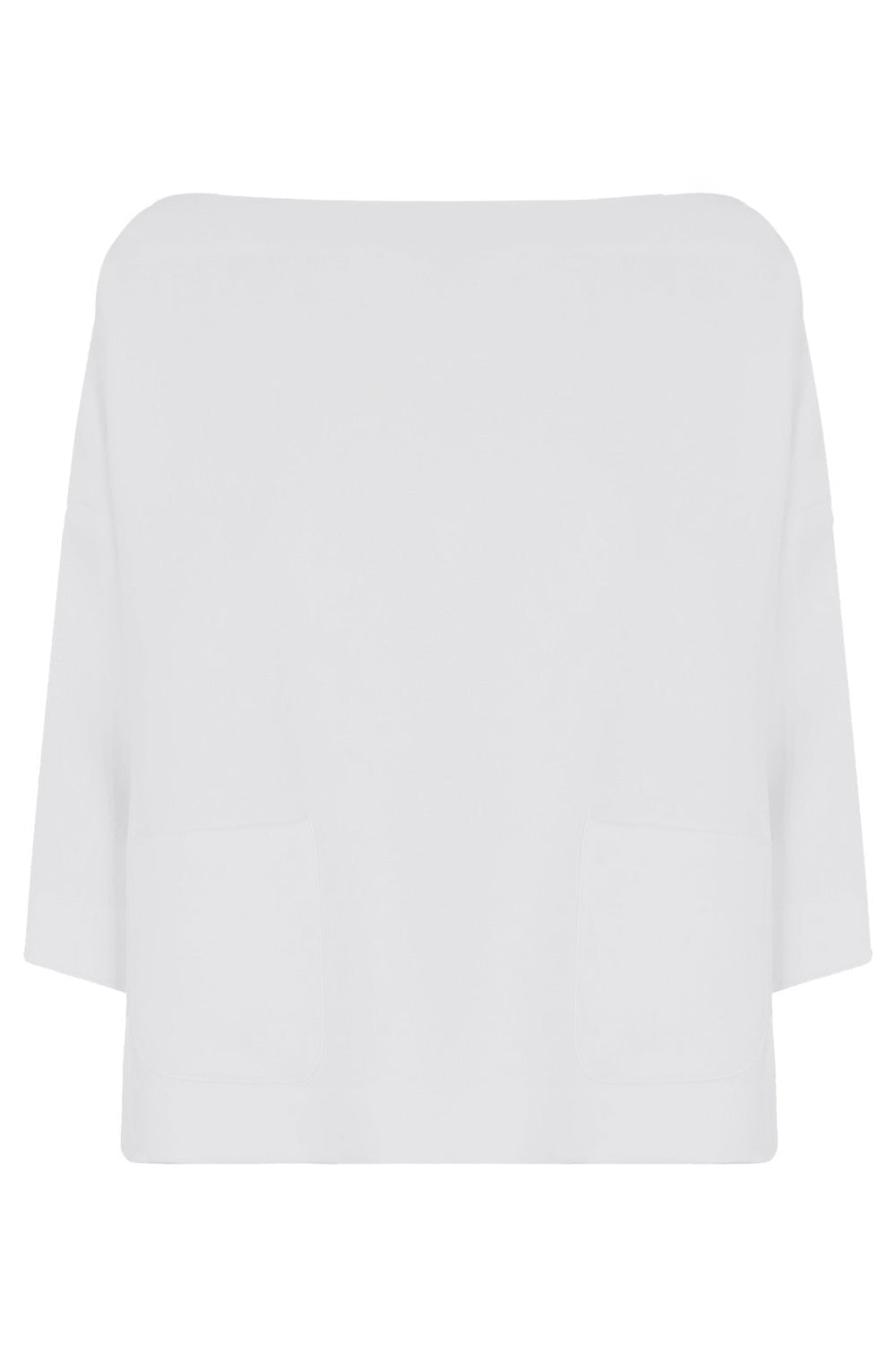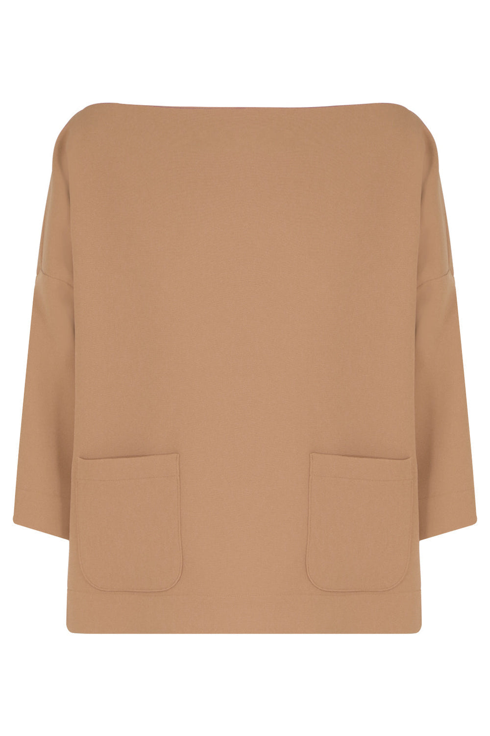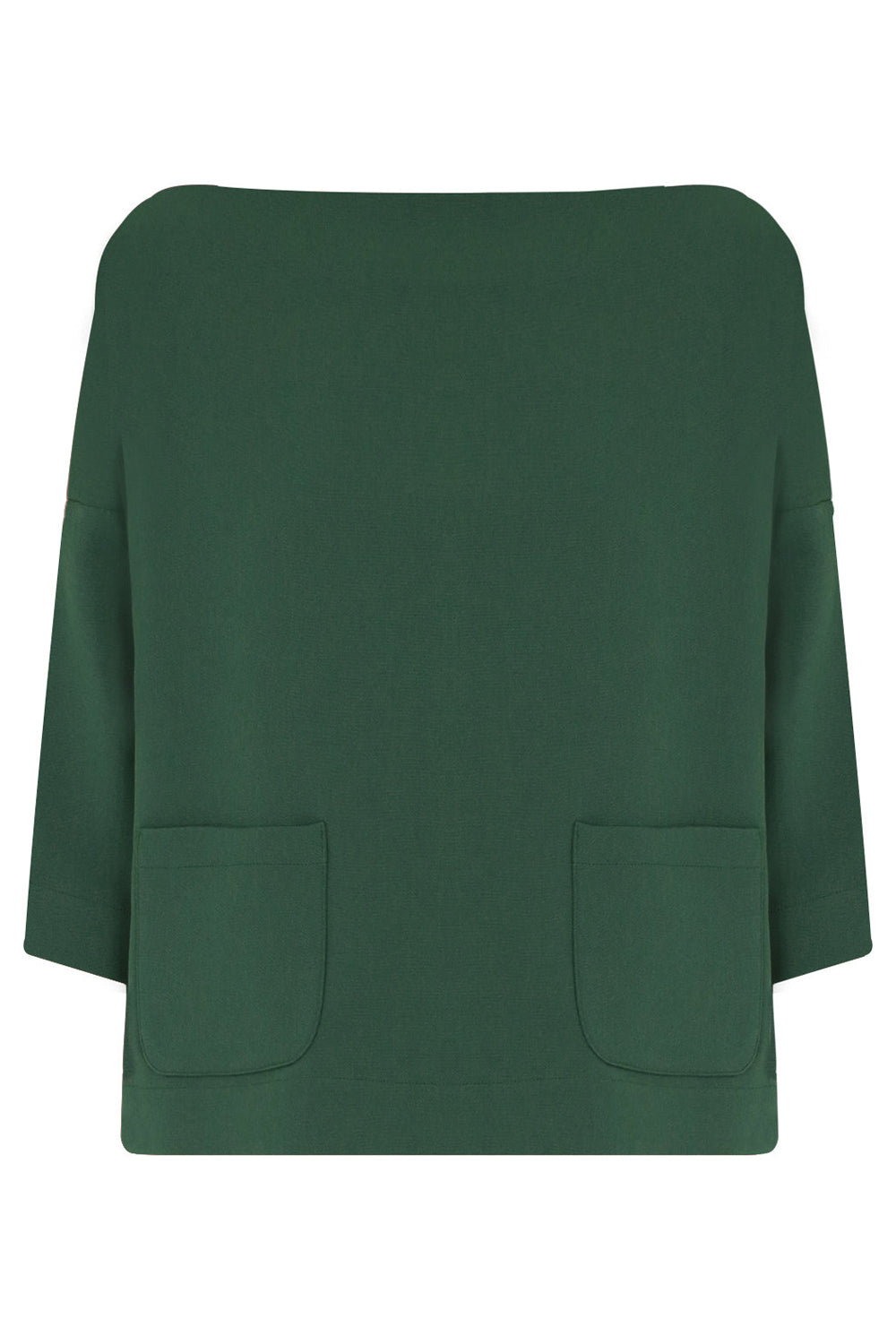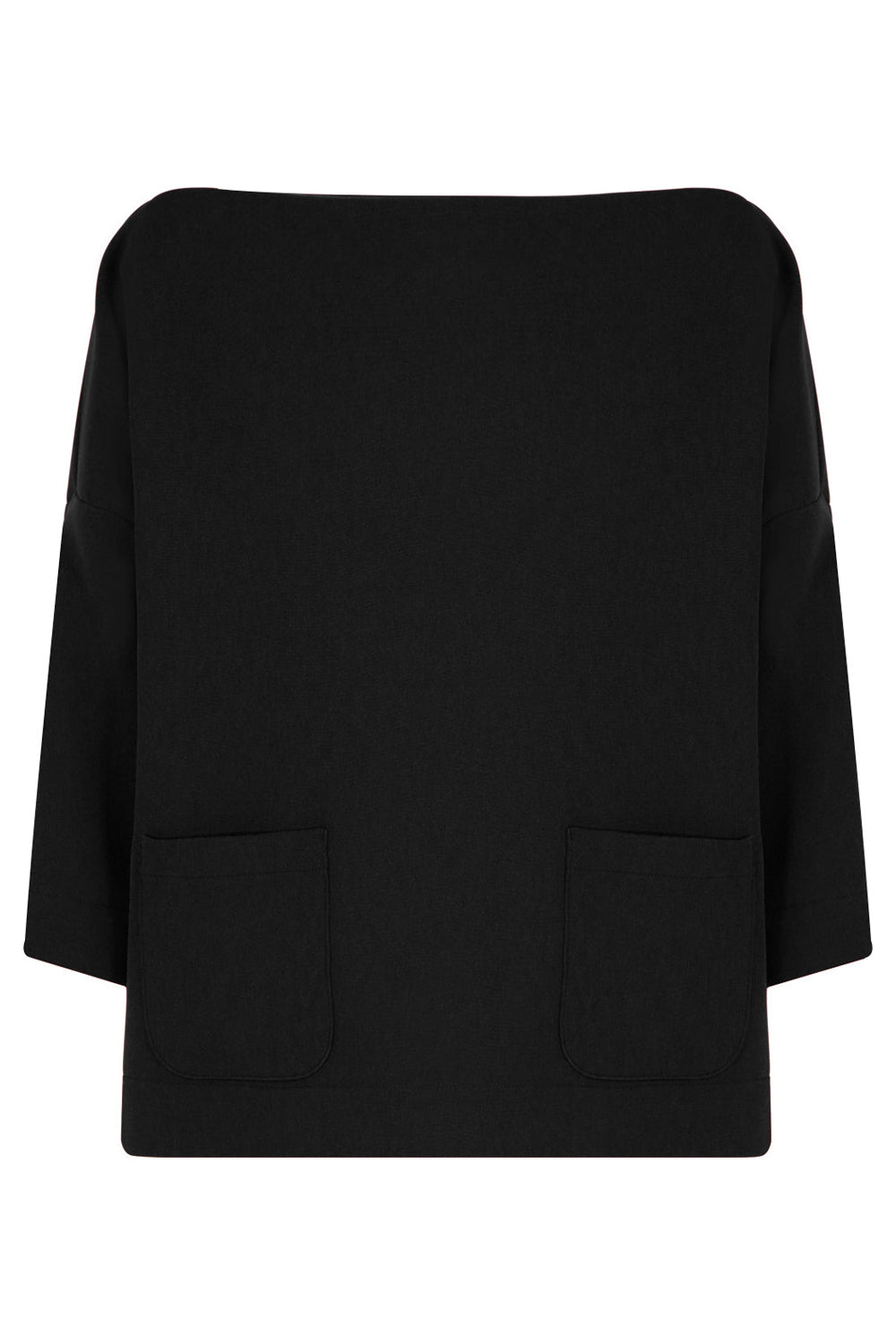 The Maison Poi Swing Top is a style with 3/4 sleeves. It features a boat neck and two front pockets.