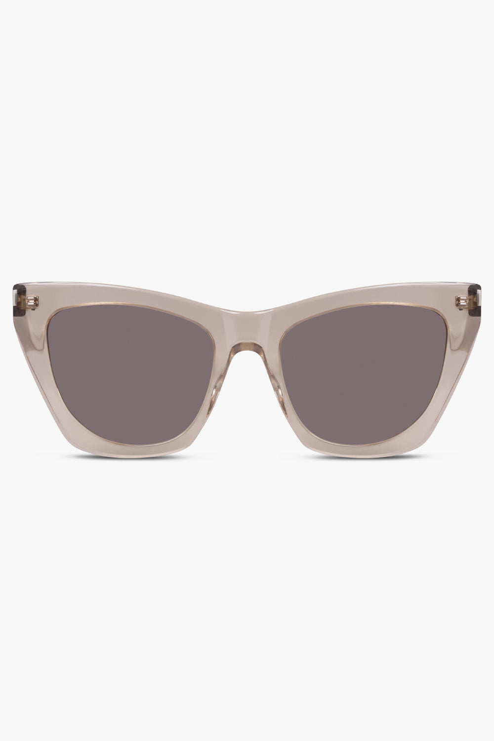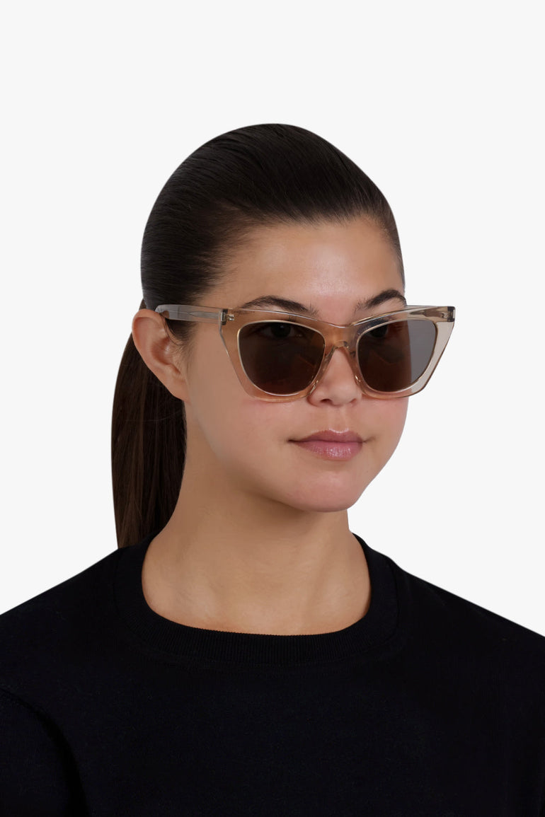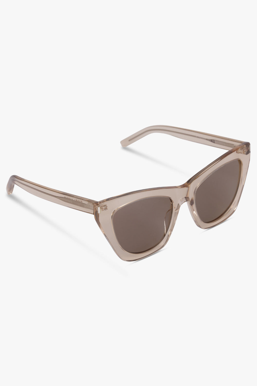 High-quality acetate frames with stylish cat-eye silhouette, paired with durable nylon lenses. Signature Saint Laurent arms with engraved detailing.