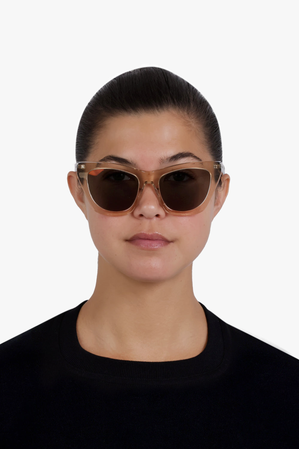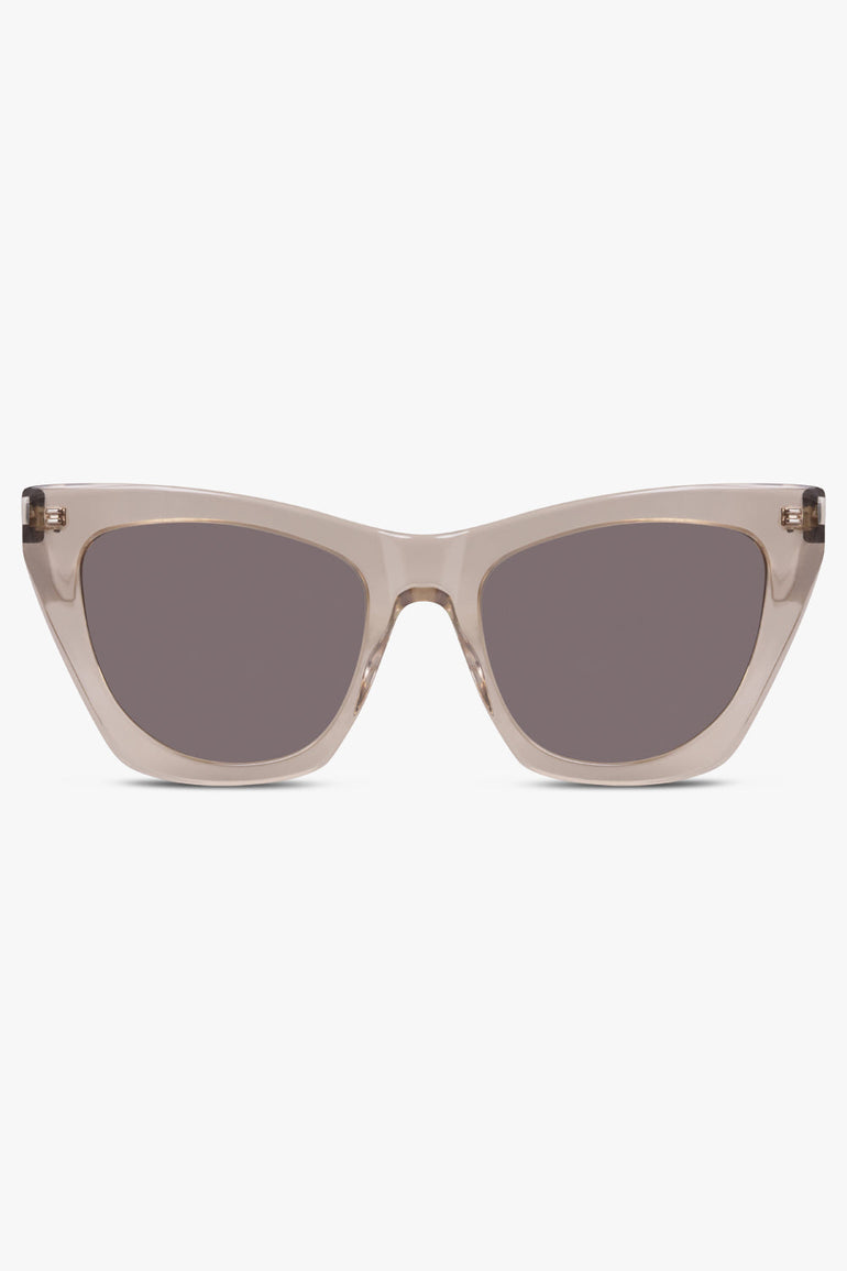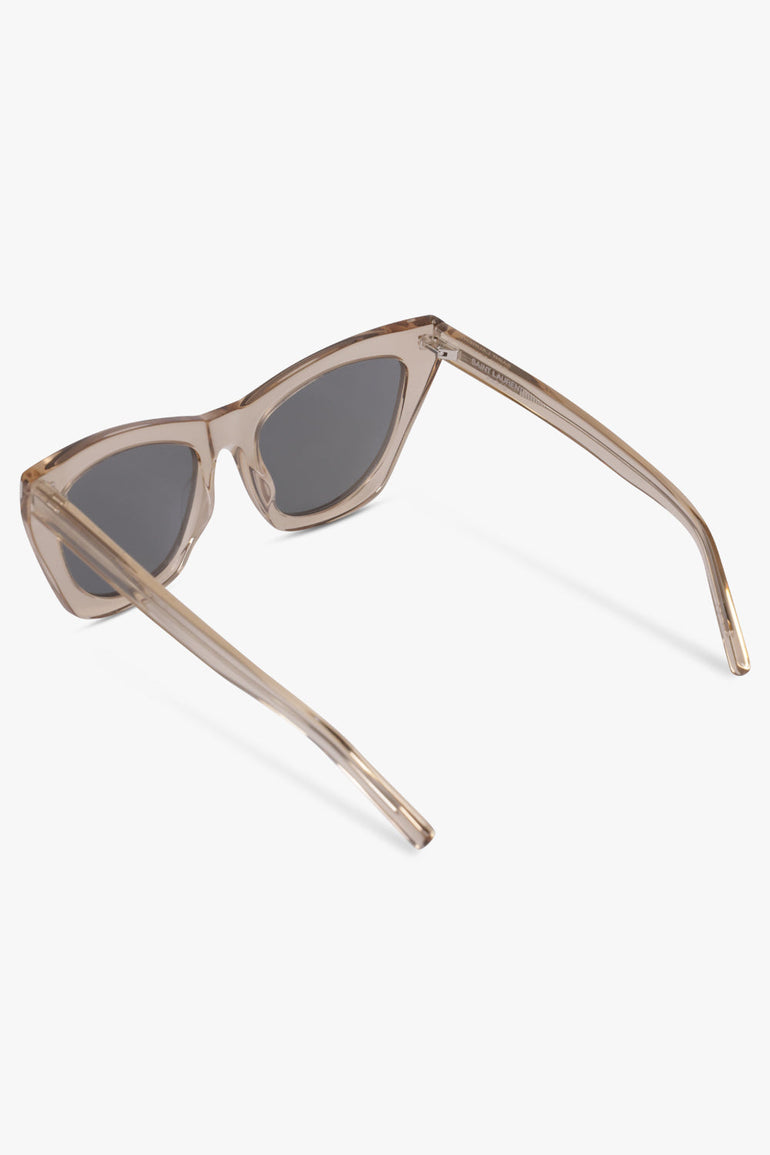 High-quality acetate frames with stylish cat-eye silhouette, paired with durable nylon lenses. Signature Saint Laurent arms with engraved detailing.
