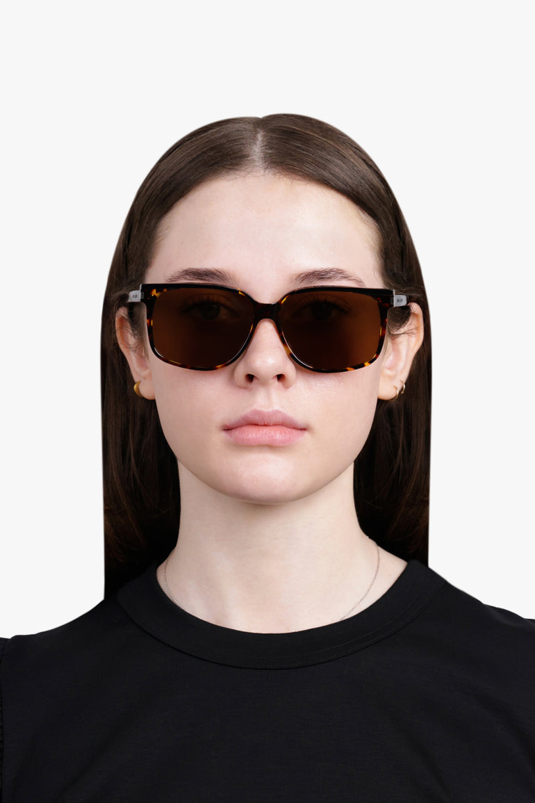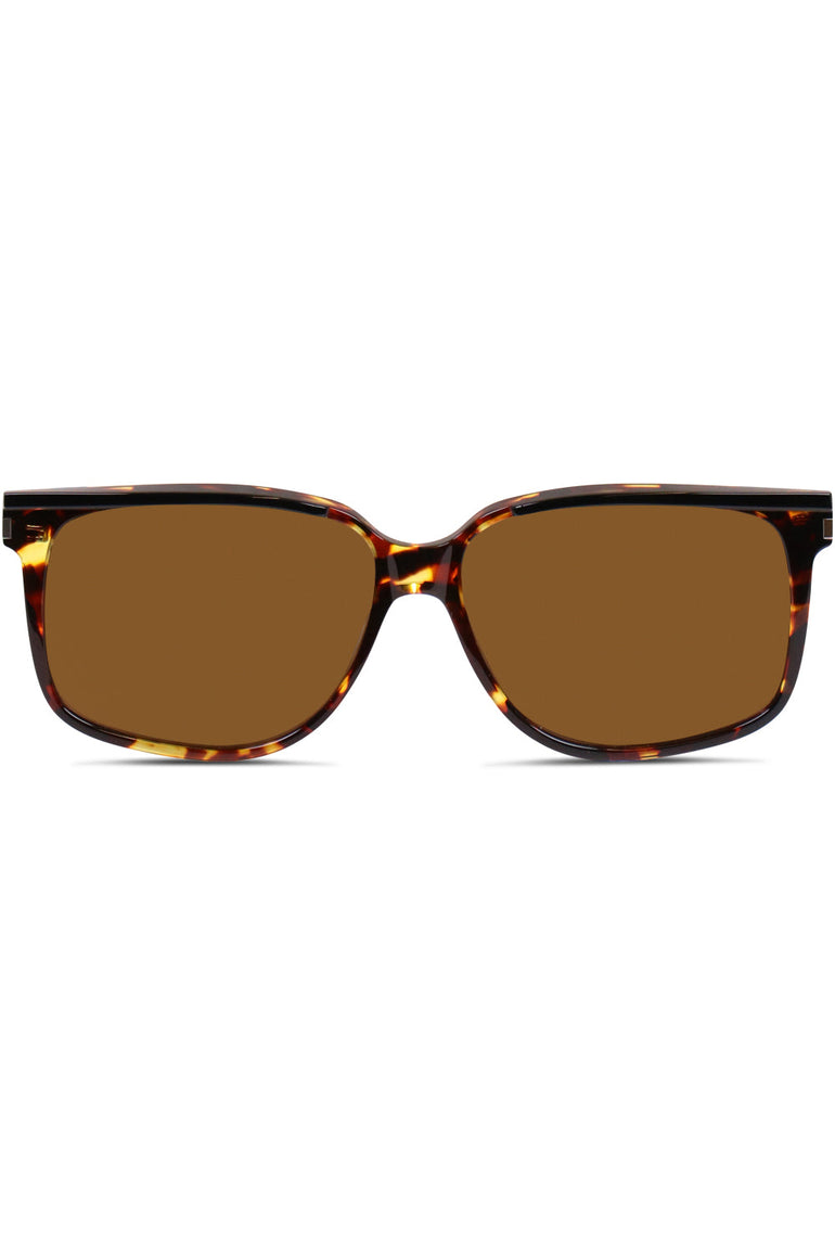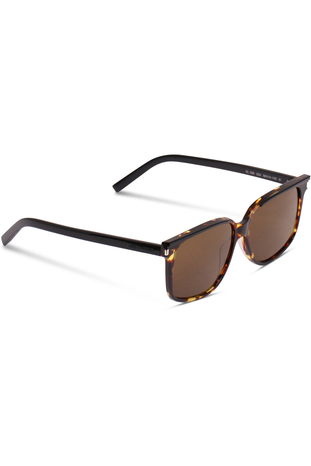 Saint Laurent's 599 Mirage sunglasses in black/brown are a thinner frame with tortoise shell patterning and thin arms.
