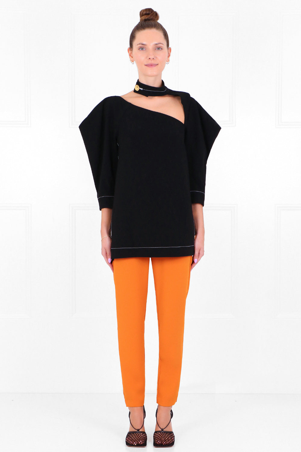 ASYMMETRIC CUTOUT BLOUSE 3/4SL BLACK