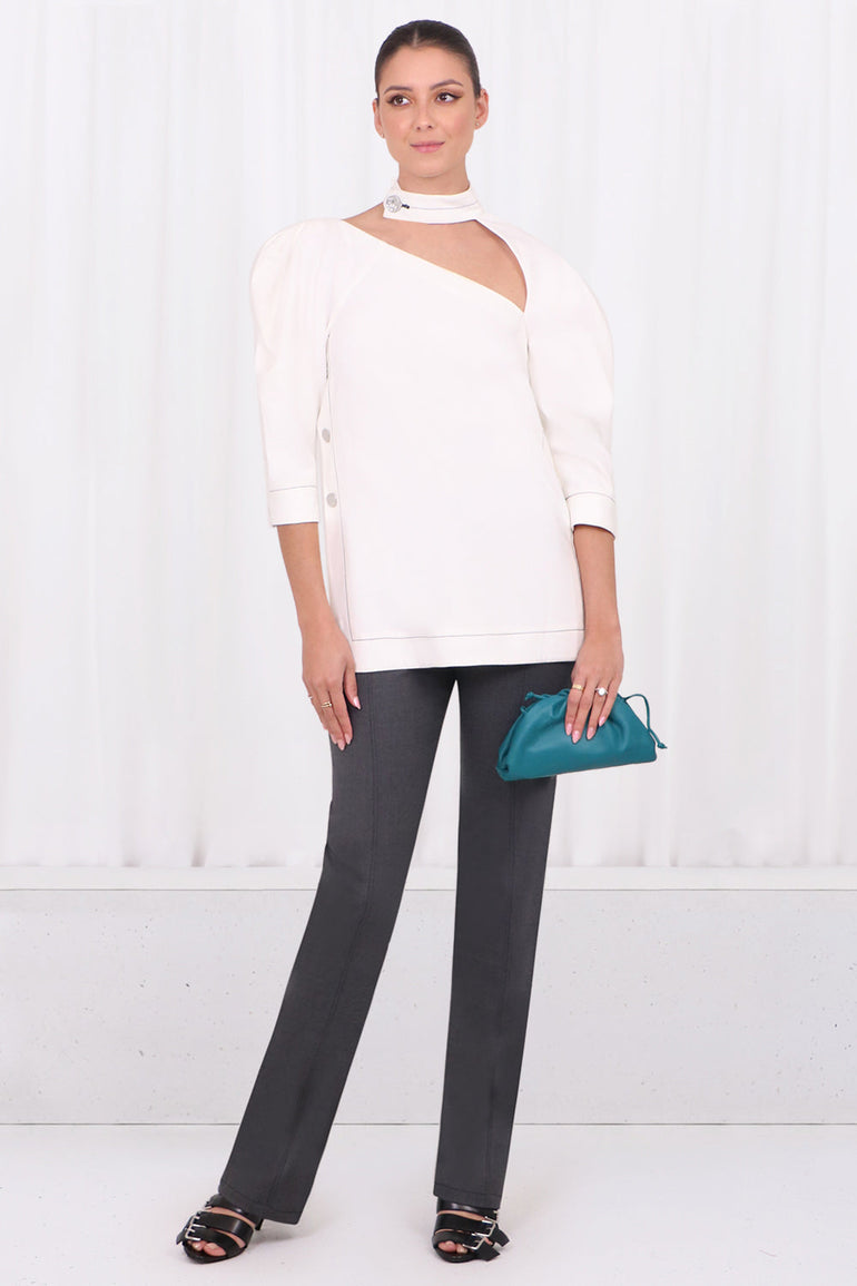 ASYMMETRIC CUTOUT BLOUSE 3/4SL OFF WHITE