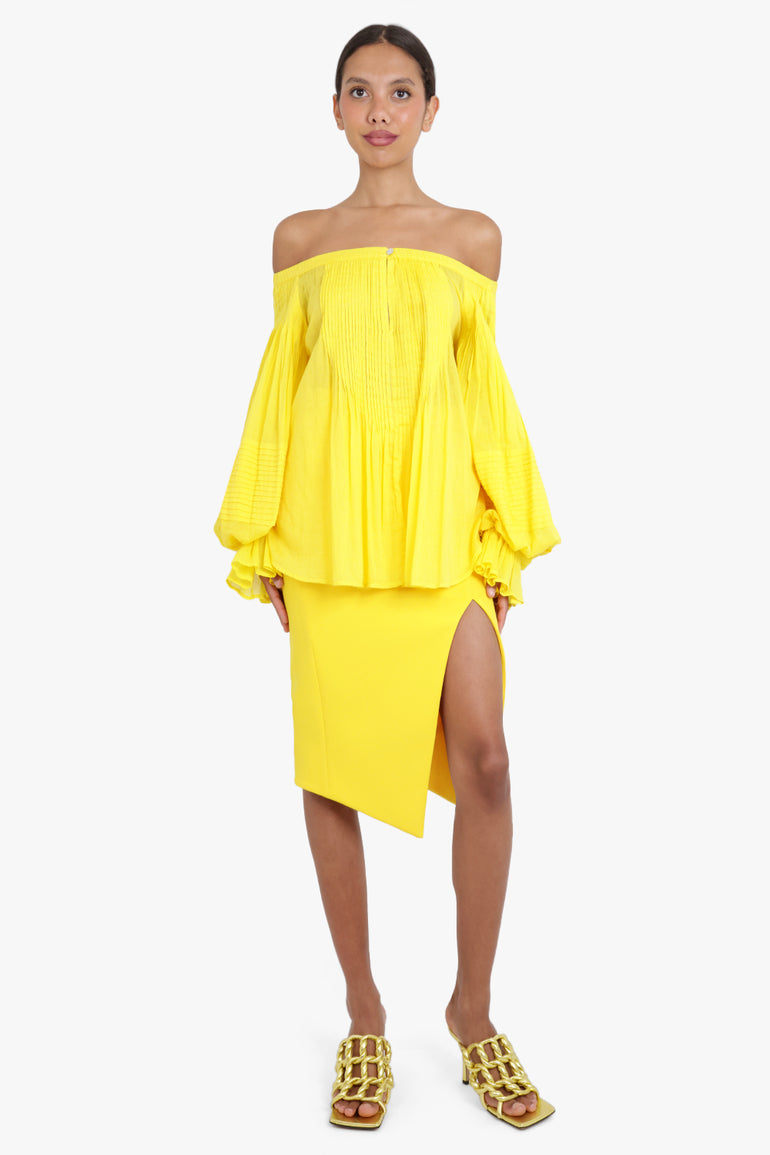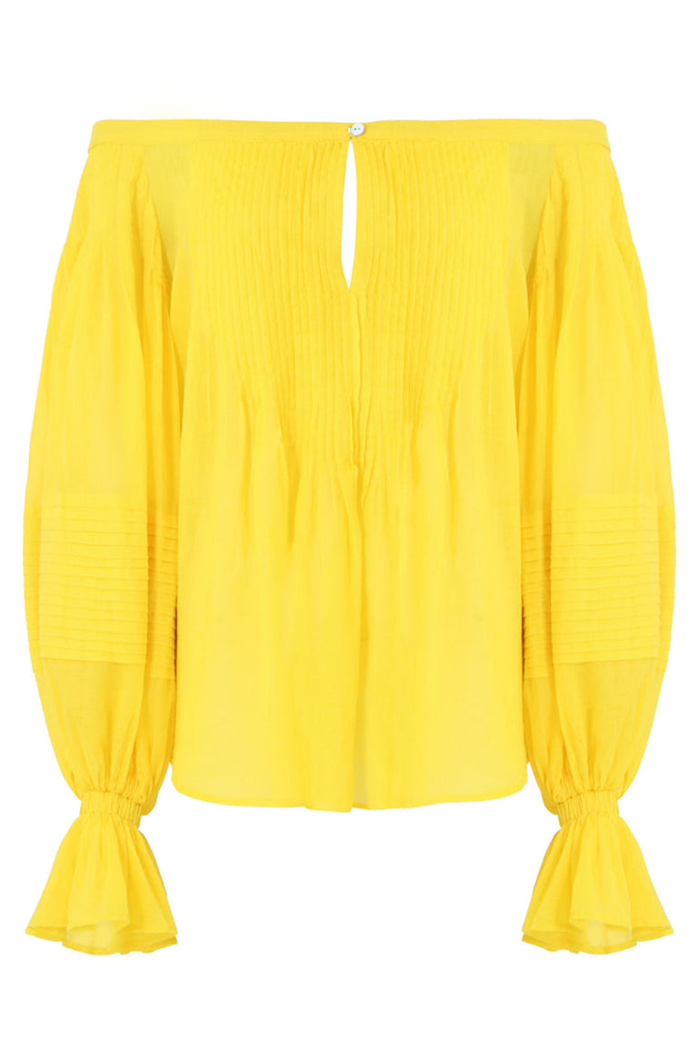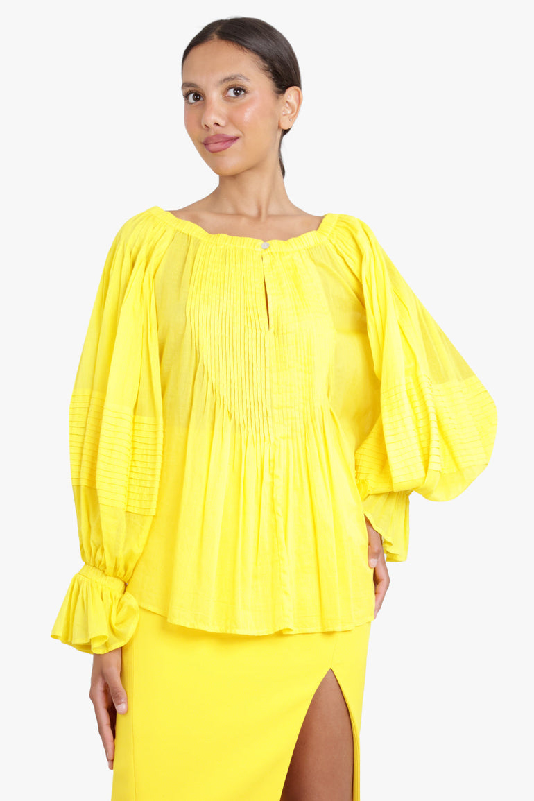 The Puff Sleeve Blouse features a V-neckline. tuck detailing and puff sleeve design, crafted in a zephire fabric.