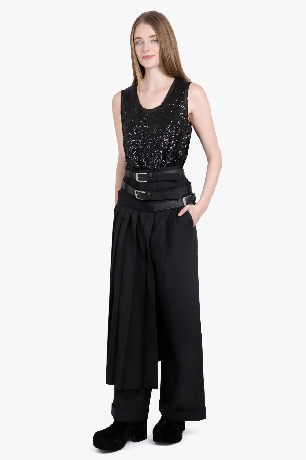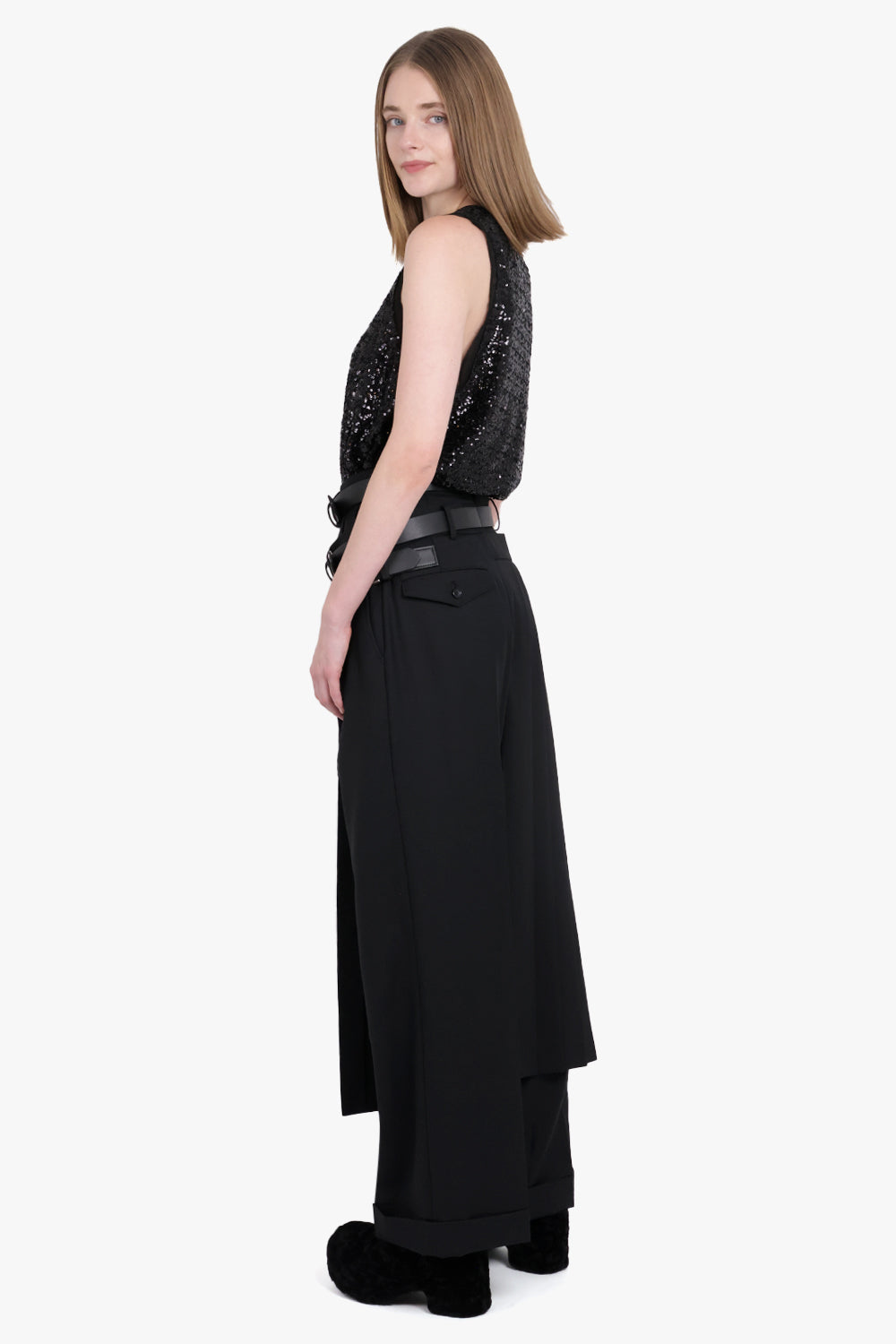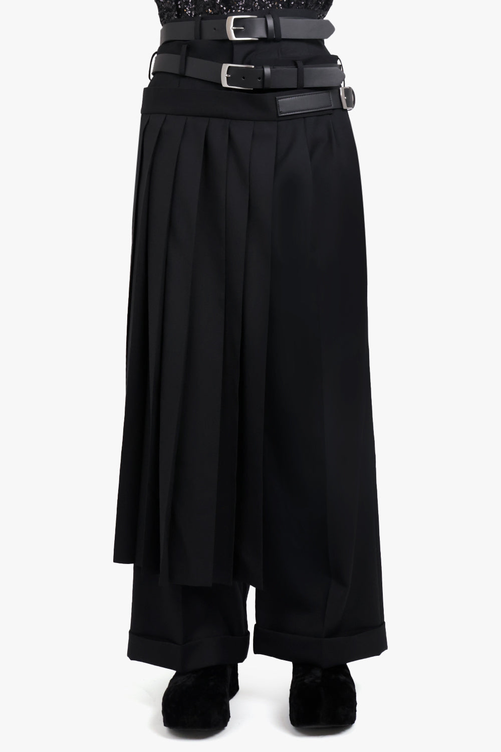 JUNYA WATANABE RTW Buckle Detail Cross Over Pleat Panel Pant | Black