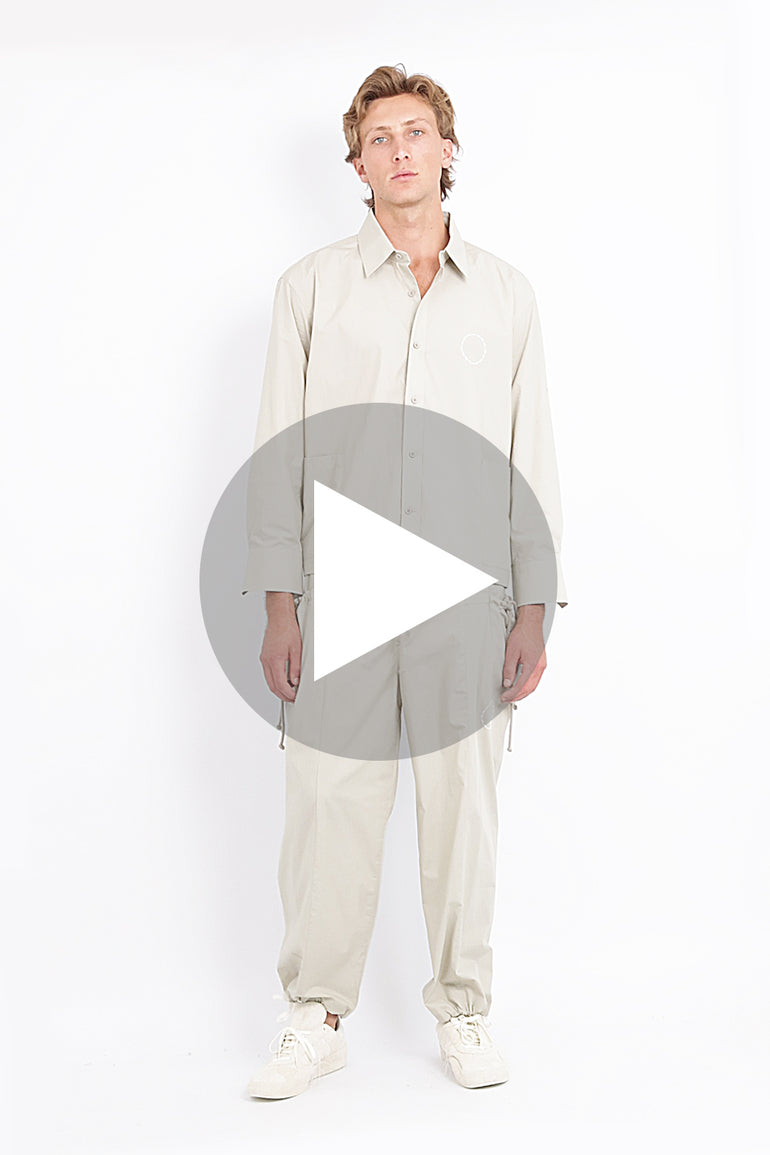 The Circle Worker Trouser by Craig Green is a light, oversized cotton trouser with exaggerated pockets. Complete with a tie waist and cotton stitch circle detail, this is the perfect transeasonal pant.