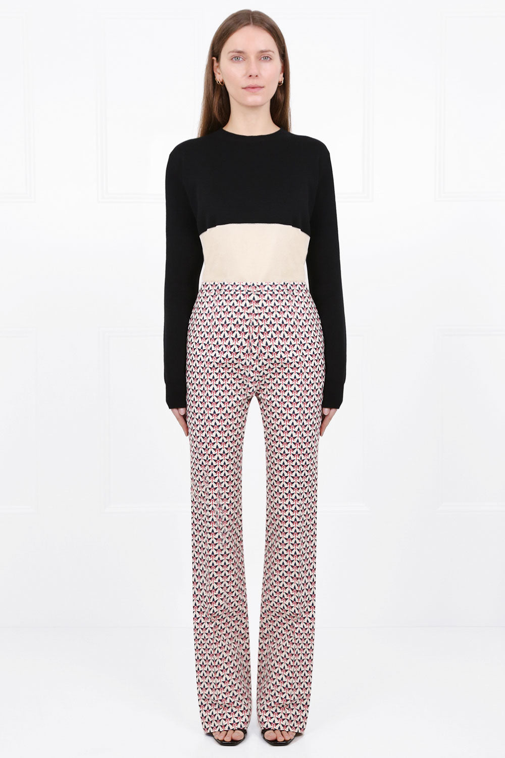 The Jil Sander Contrast Panel Knit is a lightweight knit crafted in a superfine wool viscose blend. It features a simple crew neck, long sleeves with ribbed cuffs and a contrast panel which cuts horizontally across the chest.