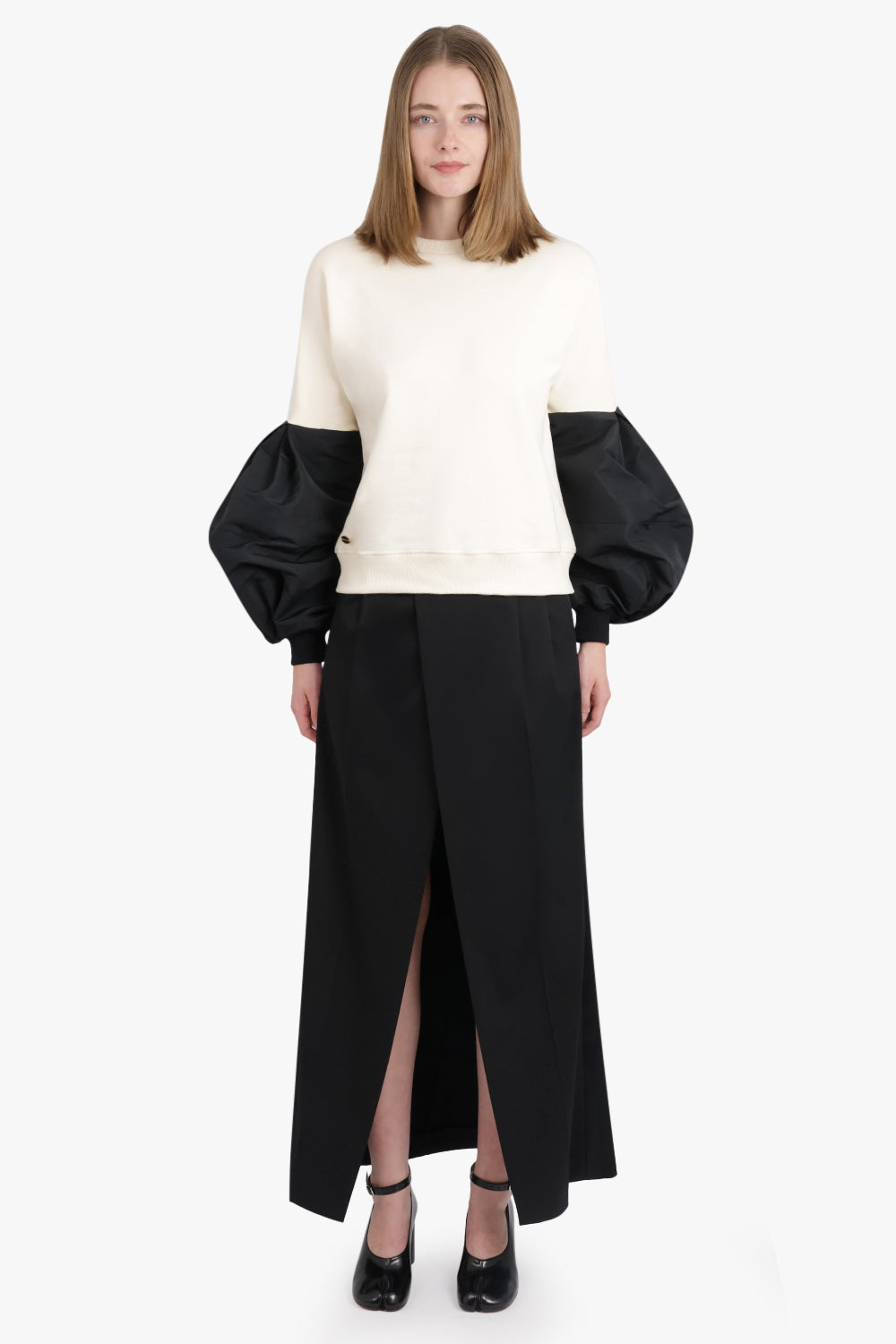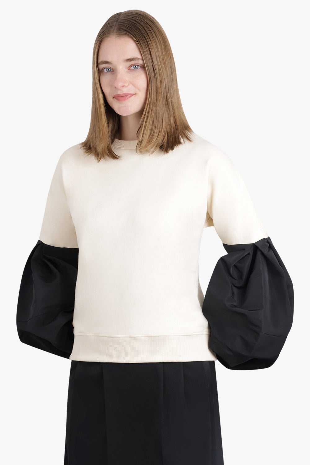 Crewneck L/S Sweatshirt With Balloon Sleeves | Cream/Black
