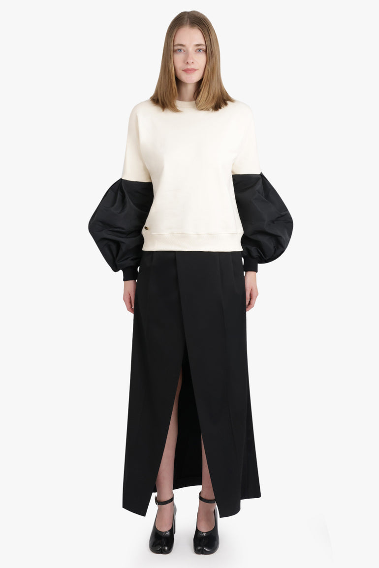 NINA RICCI RTW Crewneck L/S Sweatshirt With Balloon Sleeves | Cream/Black