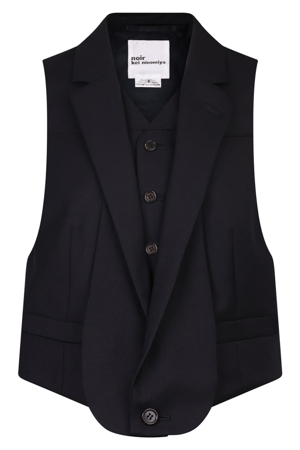 The Comme Des Garcons Cropped Vest in Black is crafted from Wool Cashmere gabardine, this style is slim fit and features three button fastening at the front.