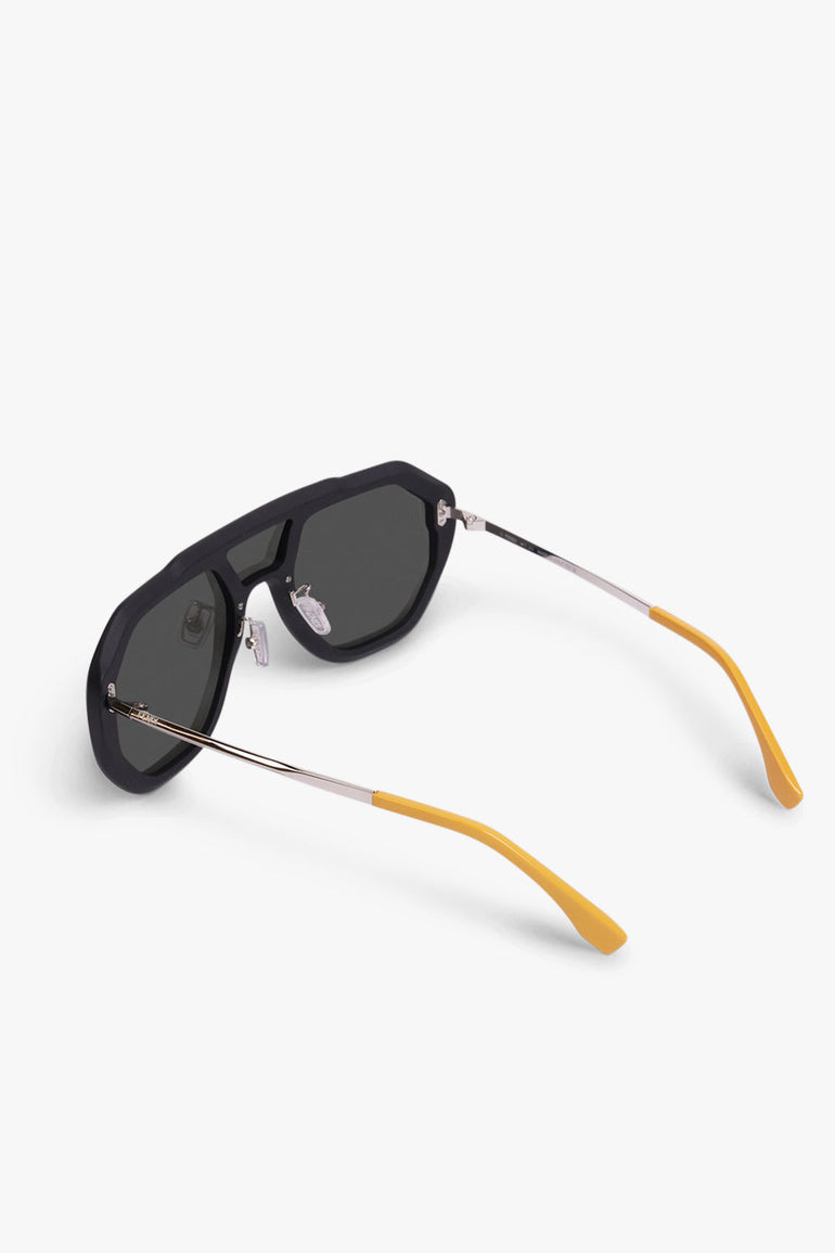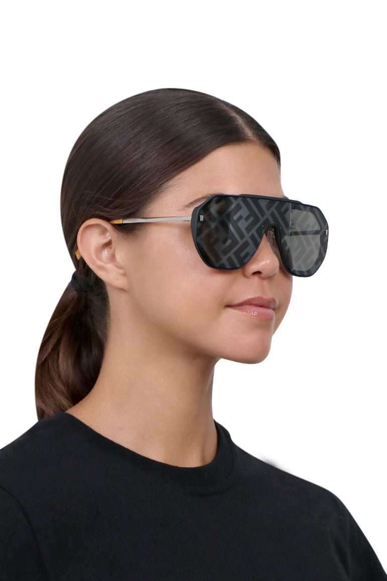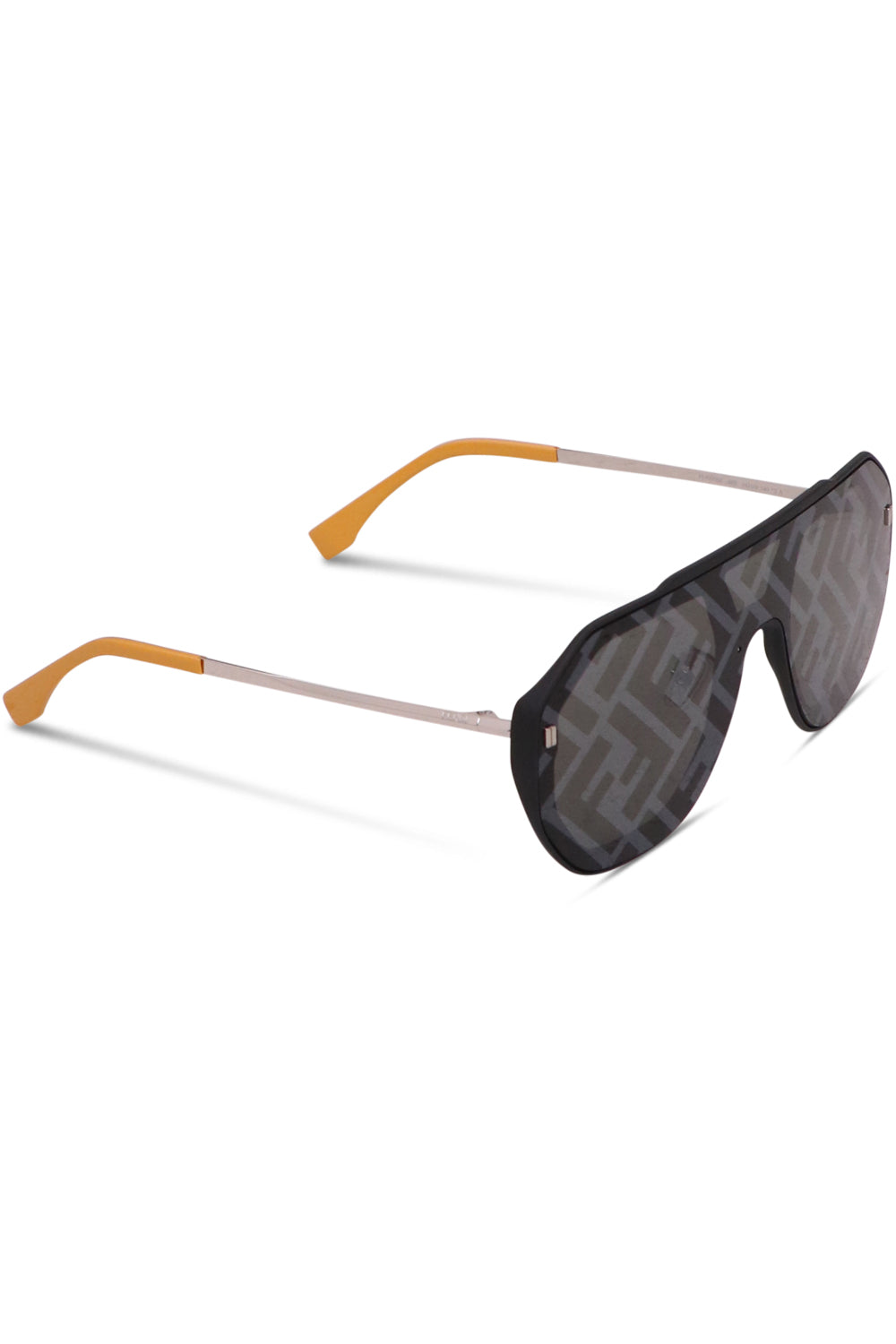 The Fendi Fabulous Sunglasses are crafted from palladium-coloured metal, and feature yellow tips at the arms, a mirror grey lenses with FF printed all over and adjustable nose pads.