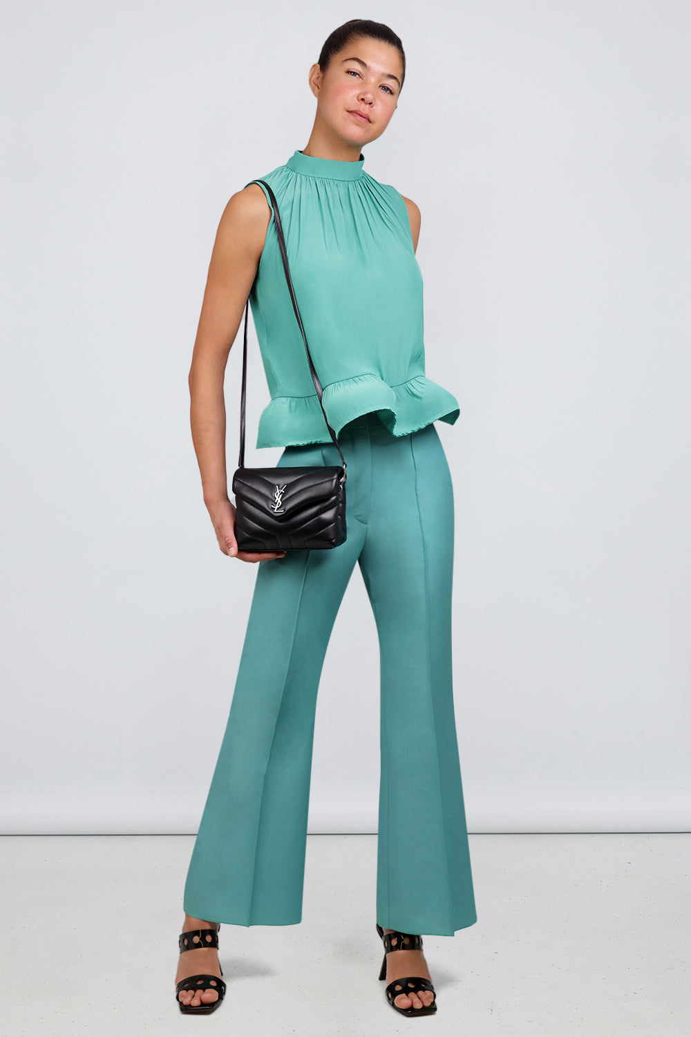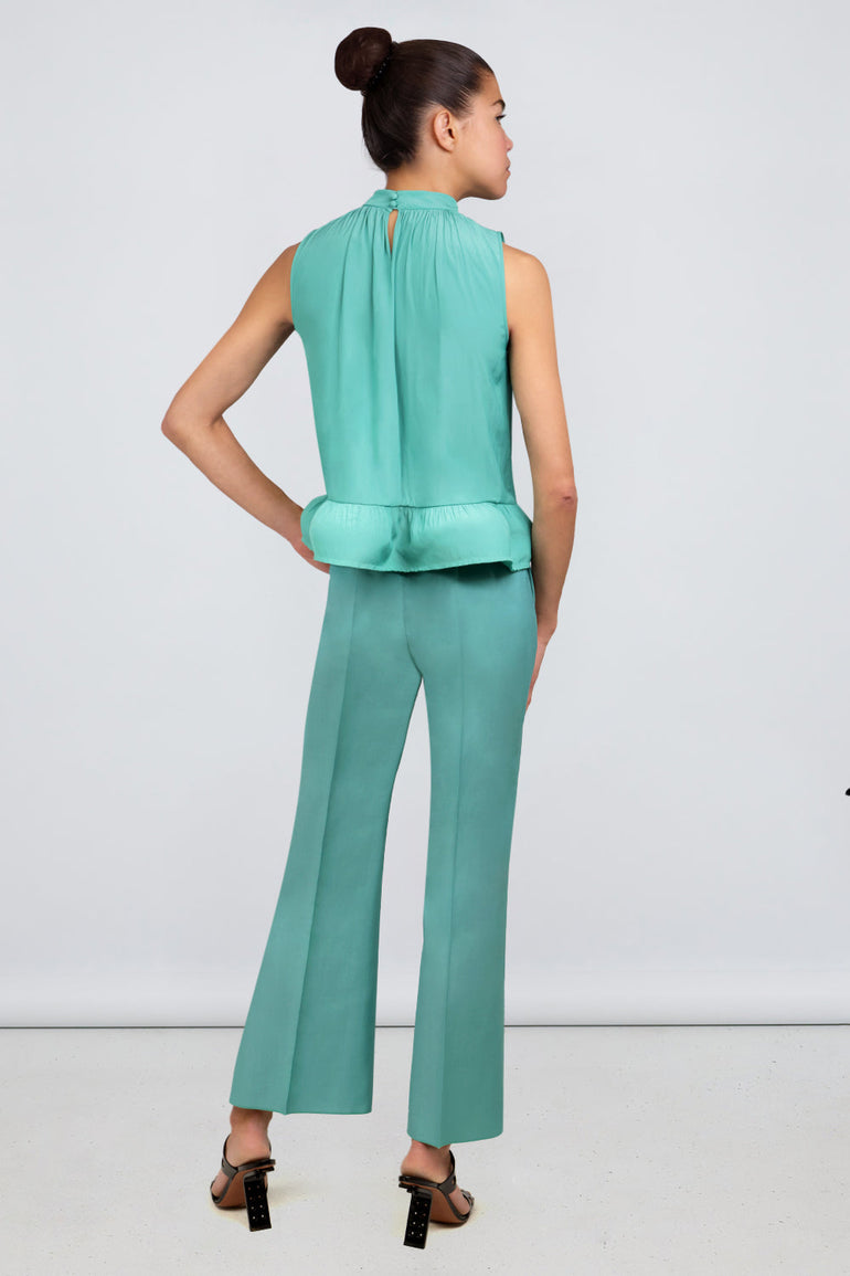 Flare Halter Neck Top is cut from smooth satin, it's defined by a halter neckline and flared peplum hem.