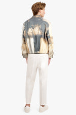The full printed jacket boasts a stunning ocean print, complete with an adjustable hem and lined sleeves and shoulders.
