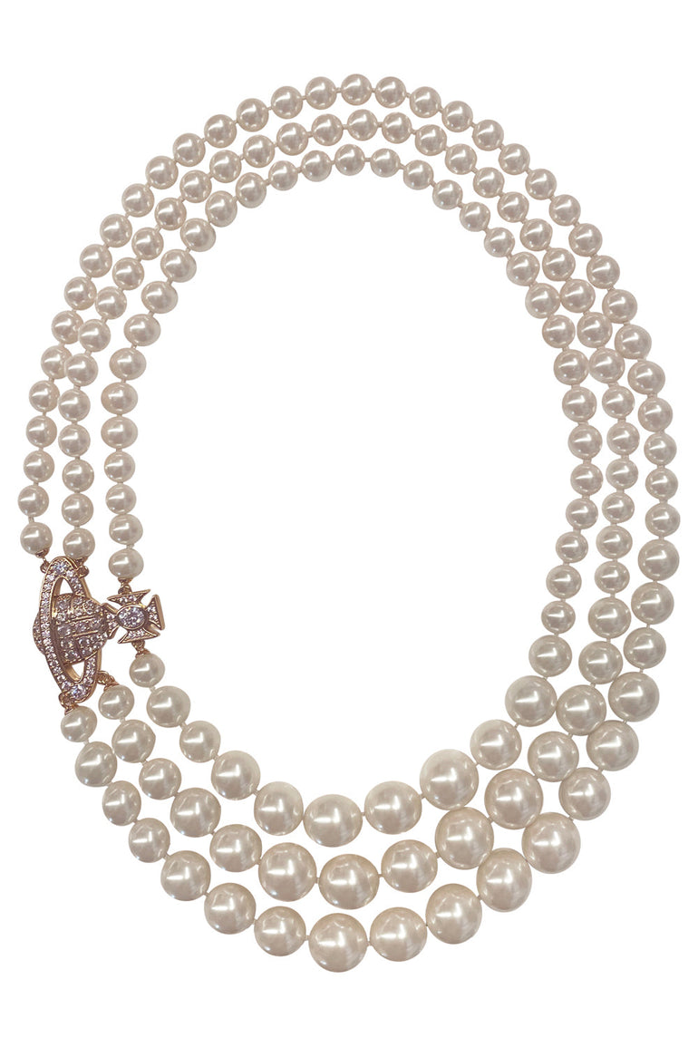 VIVIENNE WESTWOOD JEWELLERY GOLD / White/Gold Graziella Three Row Pearl Necklace | White/Gold