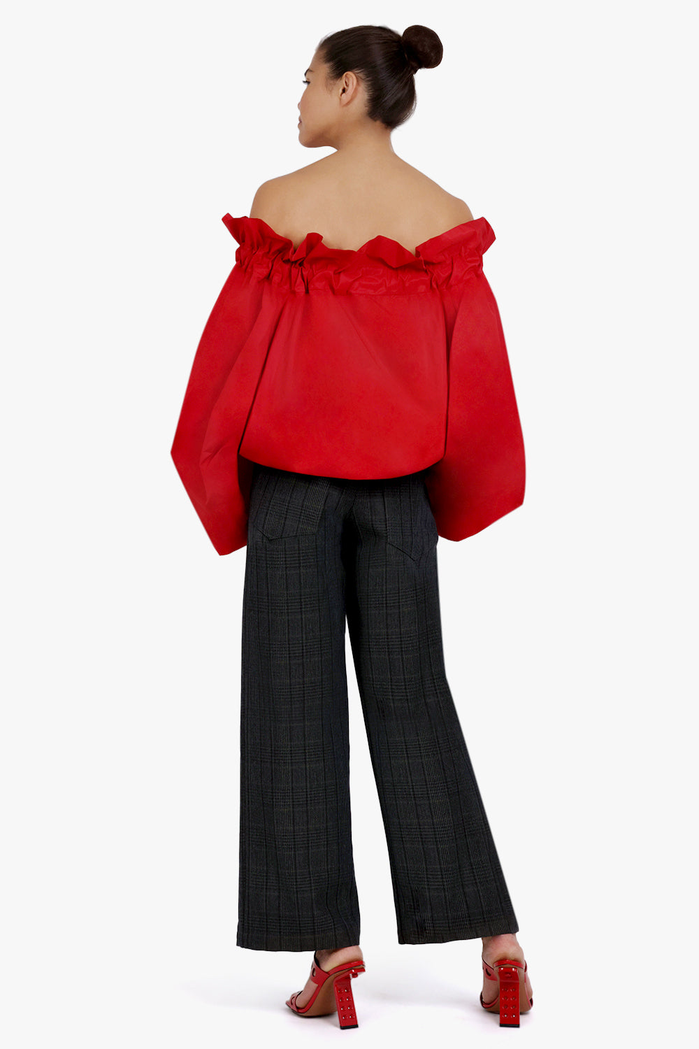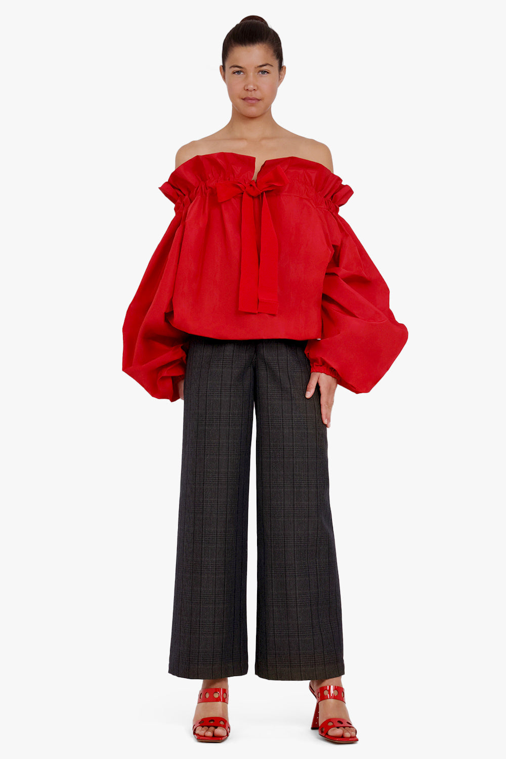 Drawstring Puff Sleeve Top in Eco-friendly Faille | Lipstick Red