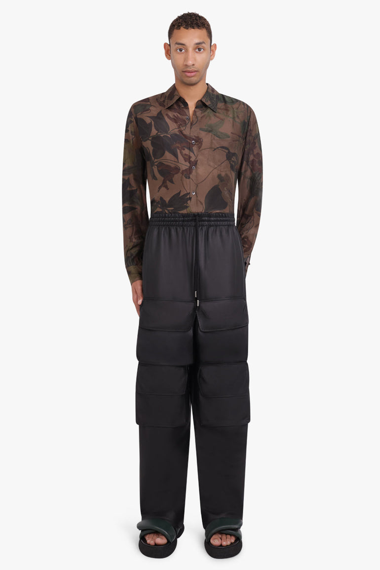 These Hesby coated cotton cargo pants feature an elastic and drawstring at the waist, with two large pockets. These loose fit trousers are a staple to any wardrobe.