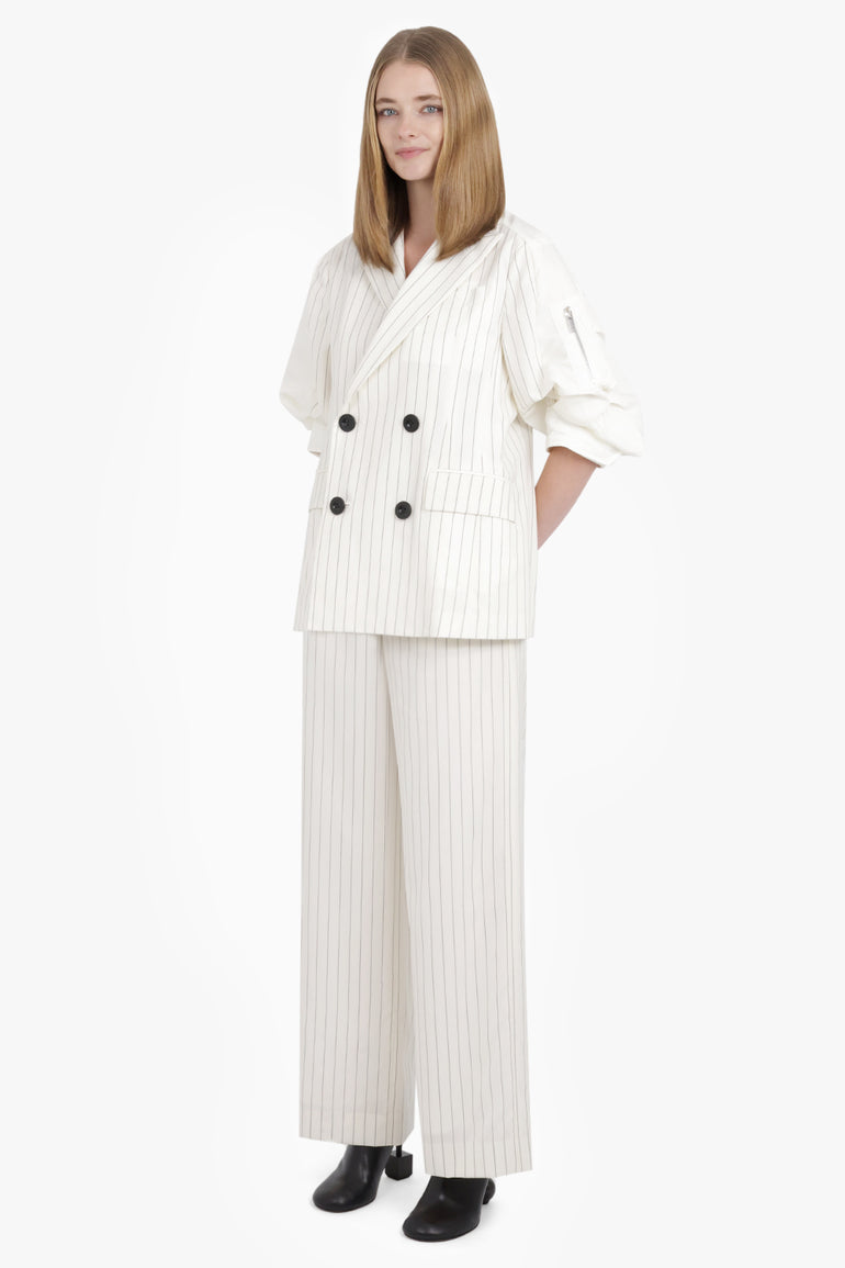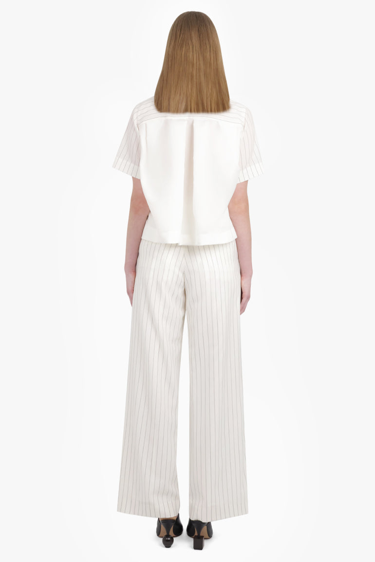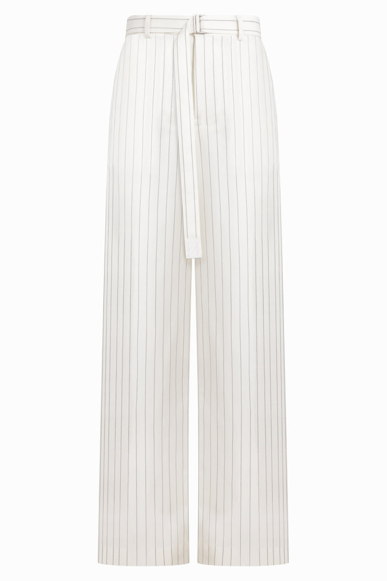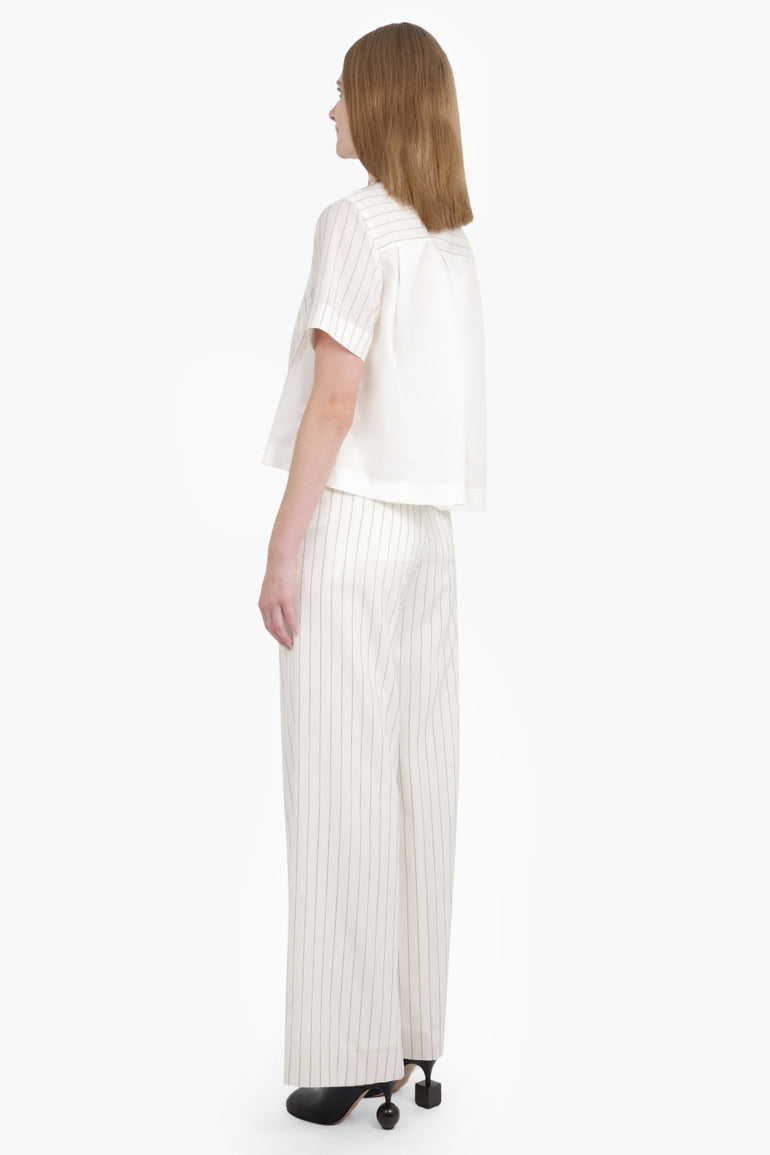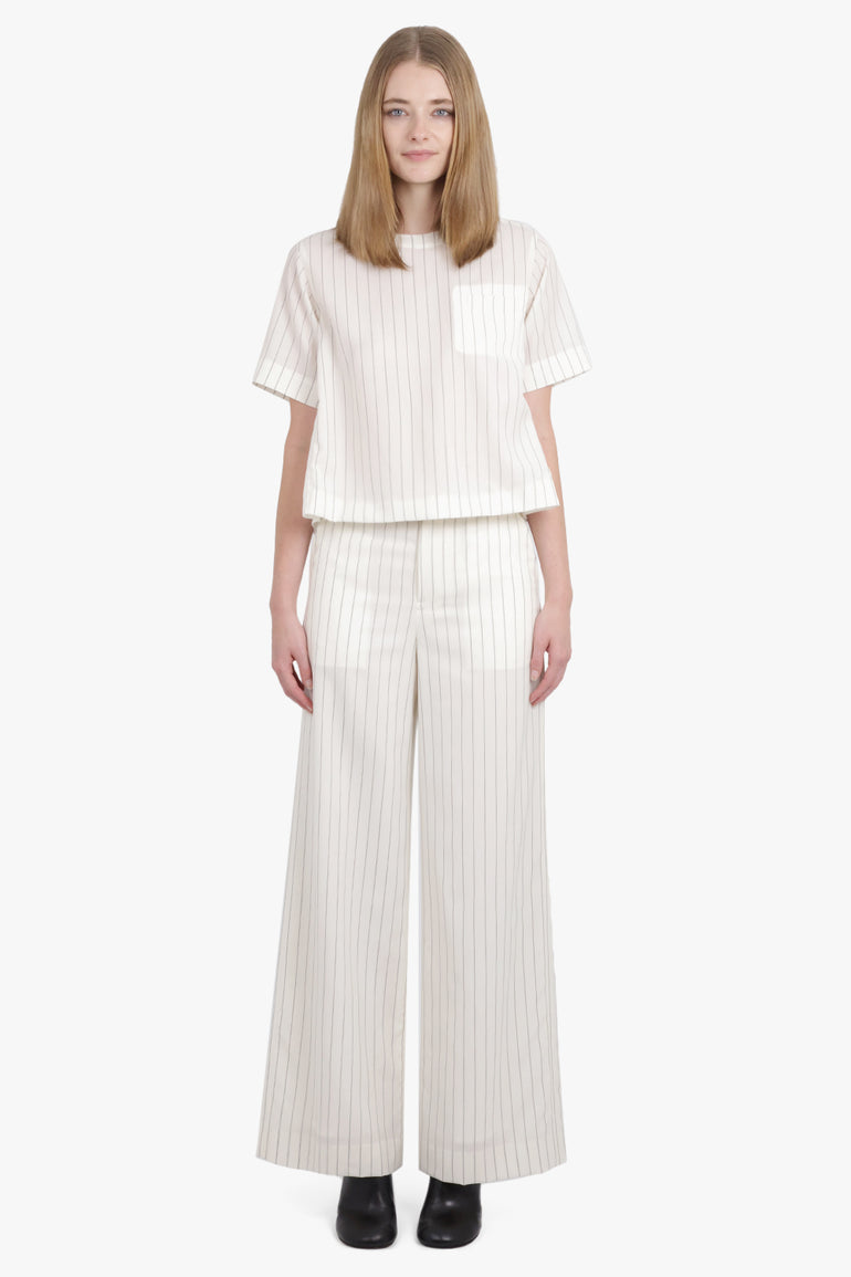 High Waisted Straight Leg Stripe Pant | Off White/Black